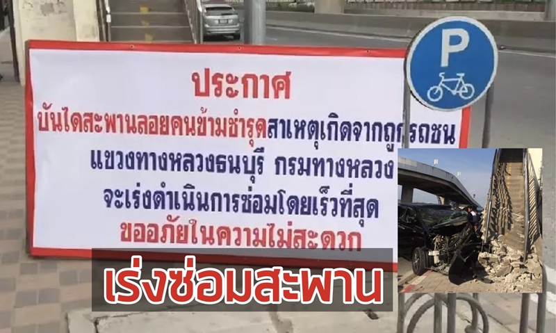 “กรมทางหลวง” เร่งซ่อมสะพานลอยถนนพระราม 2 บริเวณตลาดดีแสมดำ หลังโดนรถชนทำโครงสร้างบันไดด้านล่างเสียหาย