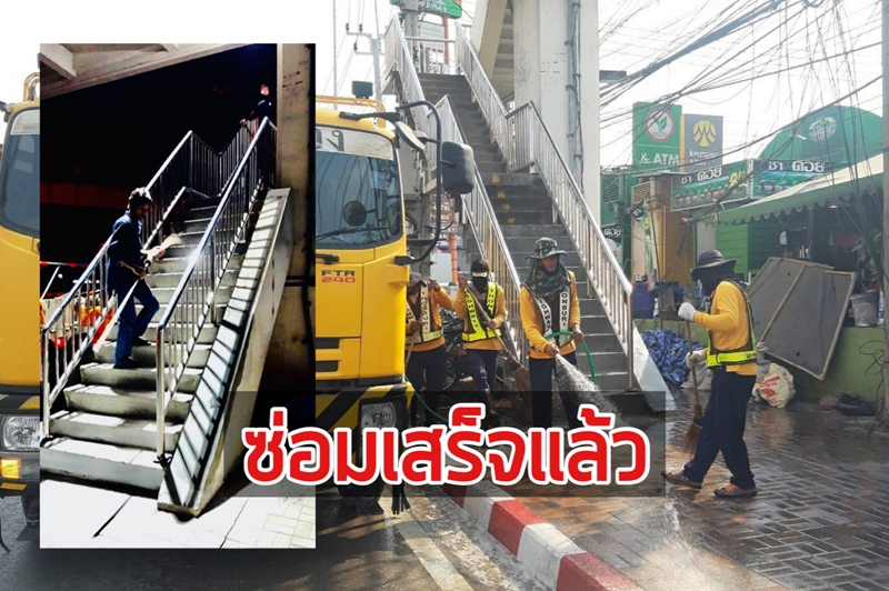 ซ่อมเสร็จแล้ว! สะพานลอยคอนกรีตข้าม ถ.พระราม 2 บริเวณปากซอยแสมดำ หลังโดนรถชนพัง มั่นใจ! ปลอดภัยตามมาตรฐาน