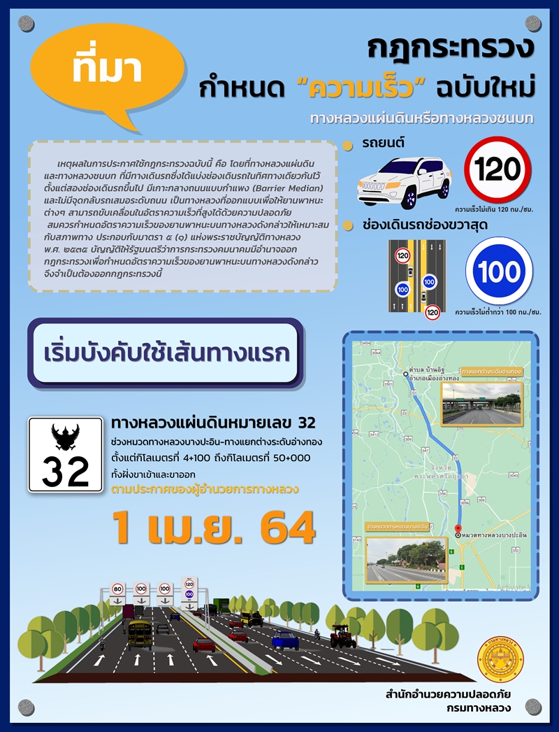 กรมทางหลวง ได้จัดทำภาพ infographic เพื่อใช้เผยแพร่ประชาสัมพันธ์เกี่ยวกับเส้นทางทางหลวงแผ่นดินหมายเลข 32