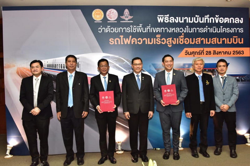 นายสราวุธ ทรงศิวิไล อธิบดีกรมทางหลวง ร่วมลงนามในบันทึกข้อตกลงว่าด้วยการใช้พื้นที่เขตทางหลวงในการดำเนินโครงการรถไฟความเร็วสูงเชื่อมสามสนามบิน ระหว่างการรถไฟแห่งประเทศไทย และกรมทางหลวง