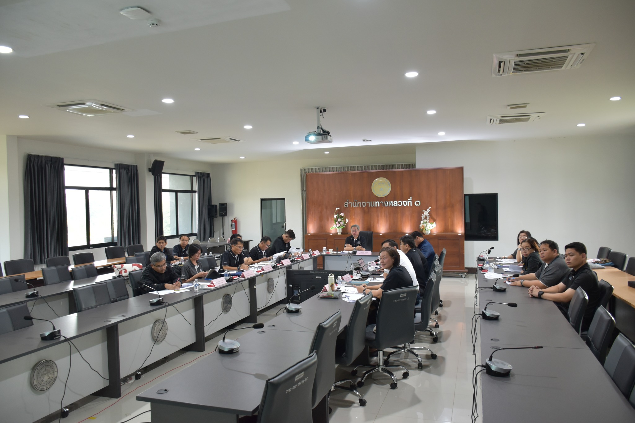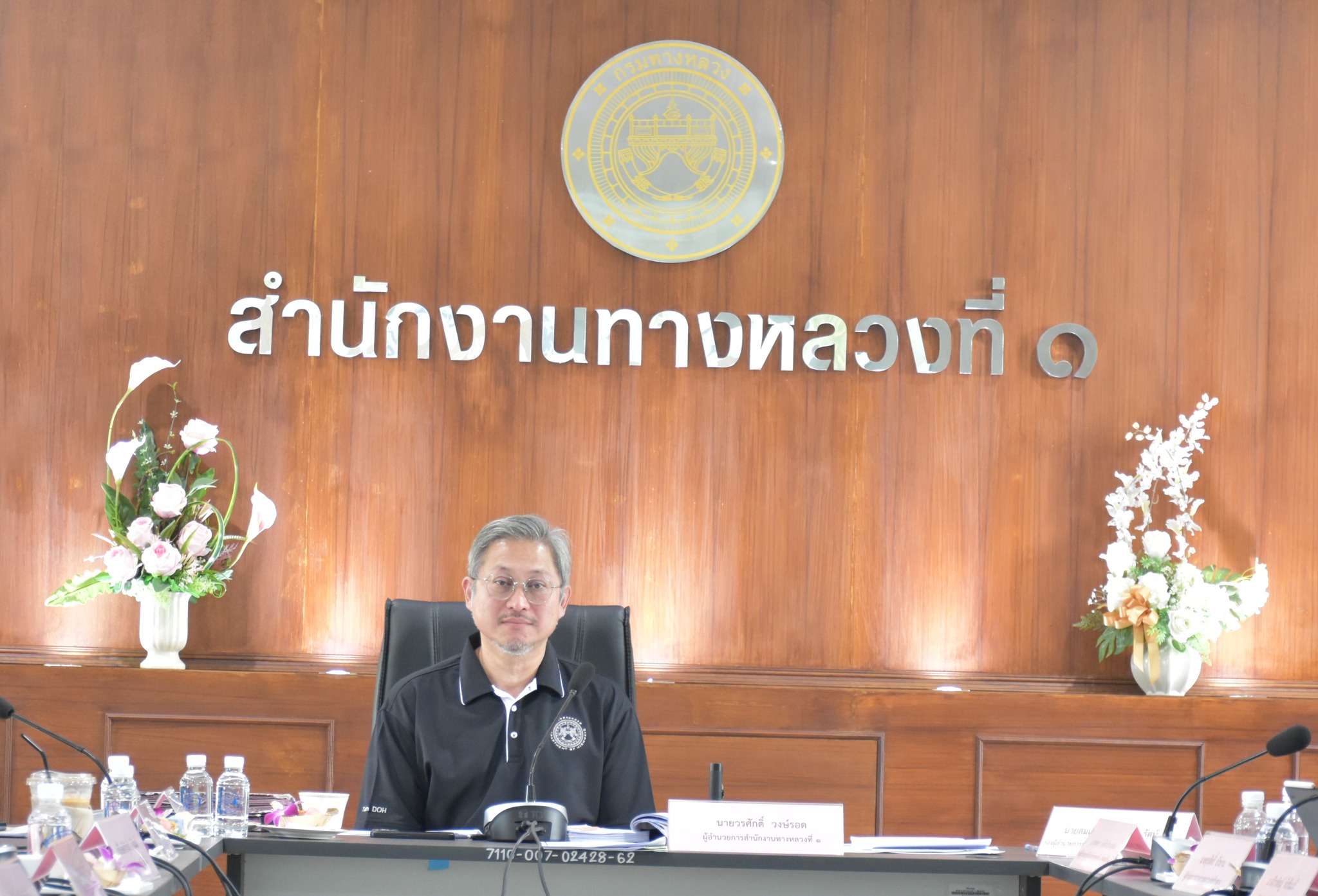 นายวรศักดิ์ วงษ์รอด ผู้อำนวยการสำนักงานทางหลวงที่ 1เป็นประธานการประชุมติดตามผลการดำเนินงานส่วนงานและแขวงทางหลวงในสังกัด โดยมีนายทศพร เหลืองกัลยาณคุณ รองผู้อำนวยการสำนักงานทางหลวงที่ 1 ตำแหน่งที่ 1 นายสมเดช โสภณดิเรกรัตน์ รองผู้อำนวยการสำนักงานทางหลวงที่ 1 ตำแหน่งที่ 2 ผู้อำนวยการแขวงทางหลวง และผู้บริหาร ร่วมประชุมติดตามผลการดำเนินงานของส่วนงานในสังกัด? เพื่อรับฟังผลการดำเนินงาน ปัญหาและอุปสรรคพร้อมแนวทางการดำเนินงาน โอกาสนี้ ผู้อำนวยการส่วนได้นำเสนอผลการดำเนินงาน พร้อมปัญหา อุปสรรค แนวทางข้อเสนอแนะในการปฏิบัติงาน ต่อที่ประชุมทราบ