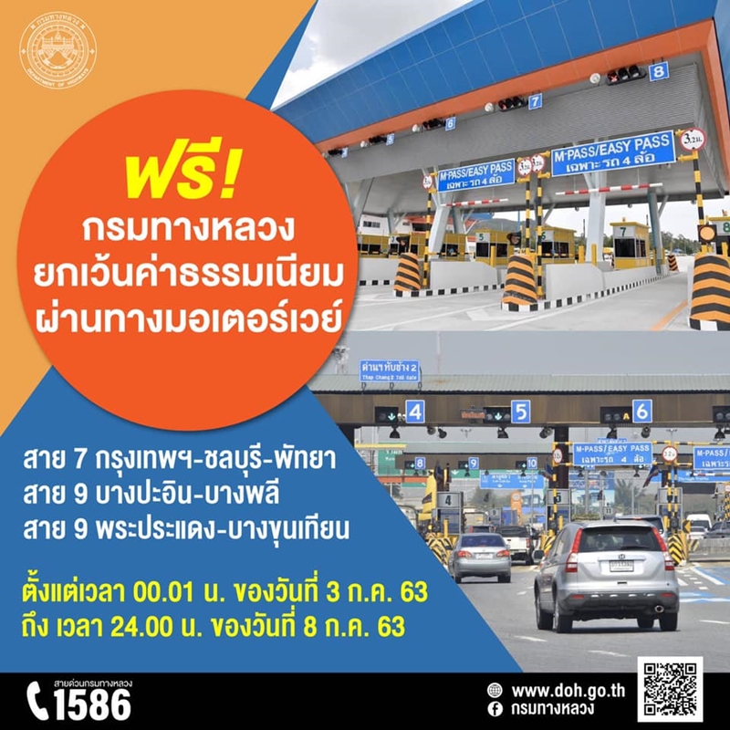 ฟรี! กรมทางหลวงยกเว้นค่าธรรมเนียมผ่านทางมอเตอร์เวย์