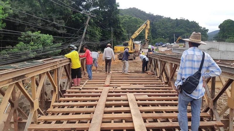 สะพานตัวที่ 5 ที่ กม.38+055 ติดตั้งสะพานเหล็ก (เบลีย์) เสร็จเรียบร้อย พร้อมใช้งาน