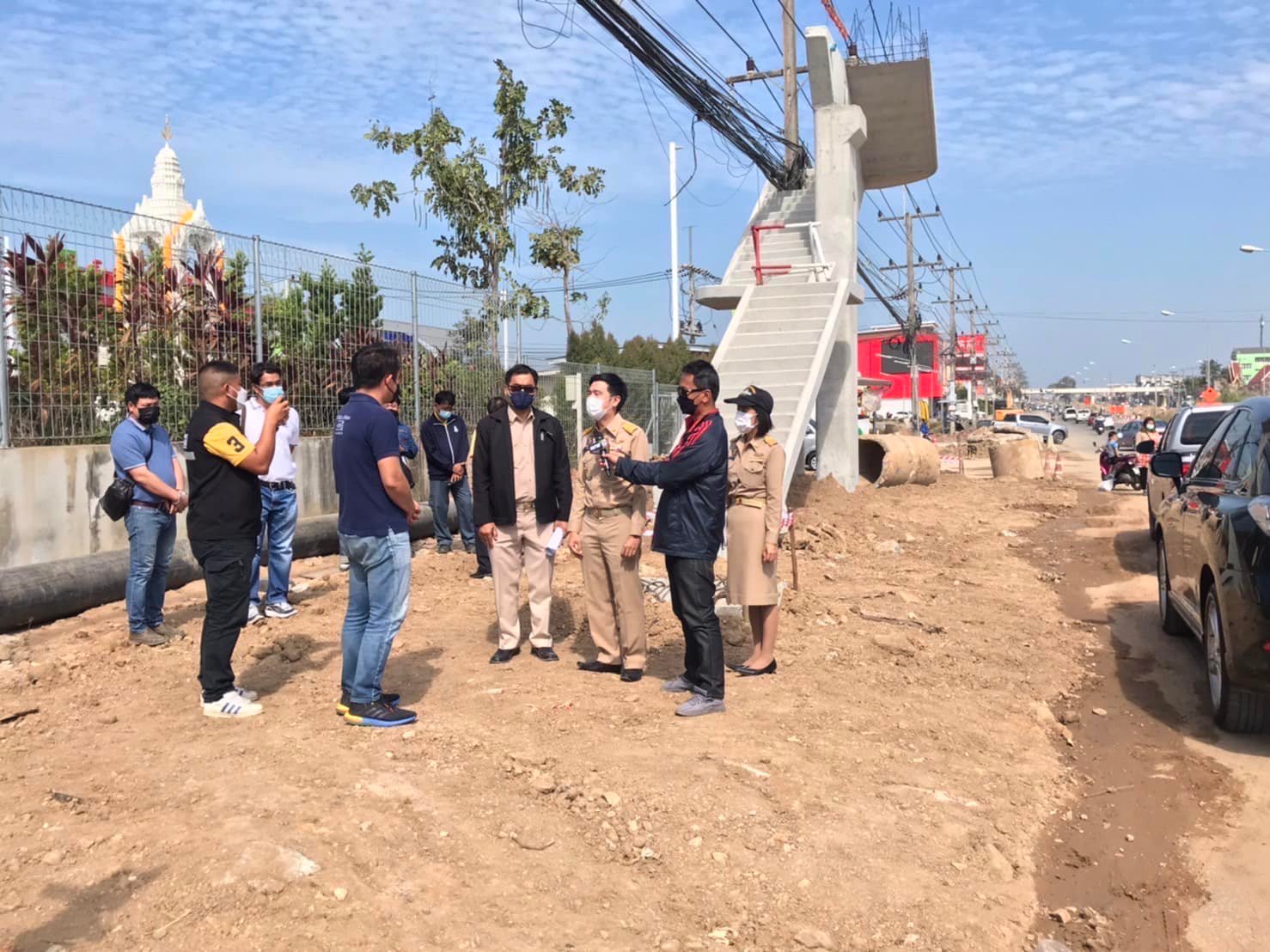ทั้งนี้ กรมทางหลวงมิได้นิ่งนอนใจแต่อย่างใด โดยได้สั่งการให้ผู้อำนวยการแขวงทางหลวงชลบุรีที่ 2 และ นายช่างควบคุมโครงการก่อสร้าง ร่วมลงพื้นที่ร่วมกับคณะทำงานของกิจการไฟฟ้ากองทัพเรืออีกครั้งเมื่อวันที่ 20 ธ.ค. 64 และได้ข้อสรุปว่ากิจการไฟฟ้าสวัสดิการกองทัพเรือจะทำการรื้อย้ายเสาไฟฟ้าออกในวันเสาร์ที่ 25 ธ.ค. 64 ซึ่งระหว่างนี้โครงการจะได้ดำเนินการก่อสร้างในส่วนโครงสร้างสะพานที่สามารถทำได้ตามแบบไปก่อน โดยเว้นในส่วนที่ติดเสาไฟฟ้าไว้ ซึ่งหากรื้อย้ายเสาไฟฟ้าออกไปแล้วจะทำการวางเหล็กเสริมและเทคอนกรีตปิดทับ รวมทั้ง เร่งรัดทำการก่อสร้างสะพานลอยคนเดินข้ามให้แล้วเสร็จตามสัญญาต่อไปและยืนยันว่าจะมีความมั่นคงแข็งแรงตามมาตรฐานวิศวกรรมงานก่อสร้าง