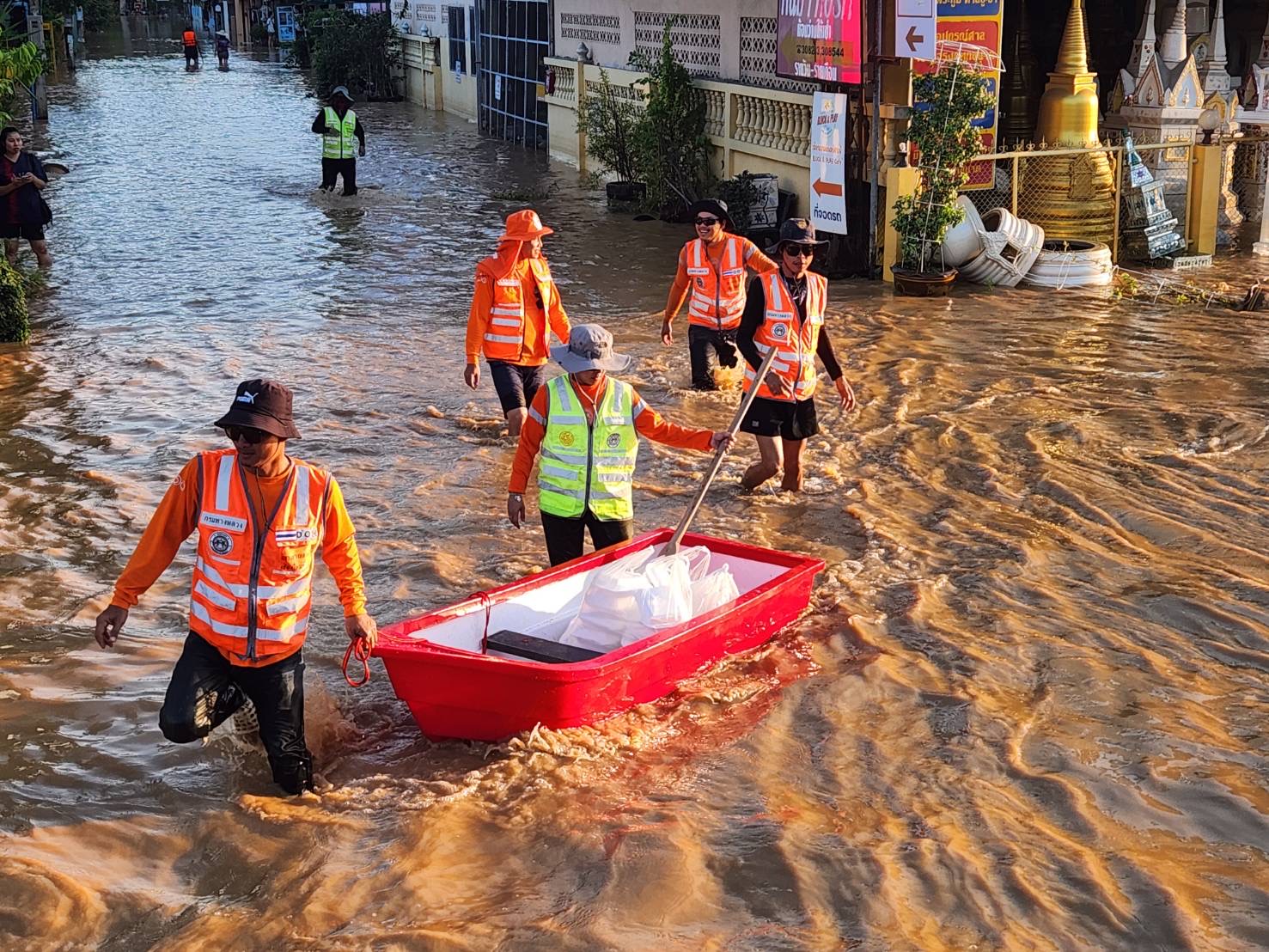 นายวรศักดิ์ วงษ์รอด ผู้อำนวยการสำนักงานทางหลวงที่ 1 นายสุวิชาณ สุระบาล ผู้อำนวยการแขวงทางหลวงเชียงใหม่ที่ 1 พร้อมเจ้าหน้าที่ สทล.1 และแขวงฯ นำทีมสมทบเจ้าหน้าที่แขวงทางหลวงเชียงใหม่ที่ 2 และตำรวจทางหลวง ร่วมบริหารจัดการจราจรเพื่อเบี่ยงรถให้วิ่งสวนทางบน ทล.11 ถนนซุปเปอร์ไฮเวย์ พร้อมเข้าให้ความช่วยเหลือรับ-ส่งประชาชน ส่งมอบอาหารและน้ำดื่มแก่ประชาชน ในพื้นที่น้ำท่วมบริเวณ ทล.1141 ถนนมหิดล / แยกหนองหอย / สำนักงานขนส่งจังหวัดเชียงใหม่