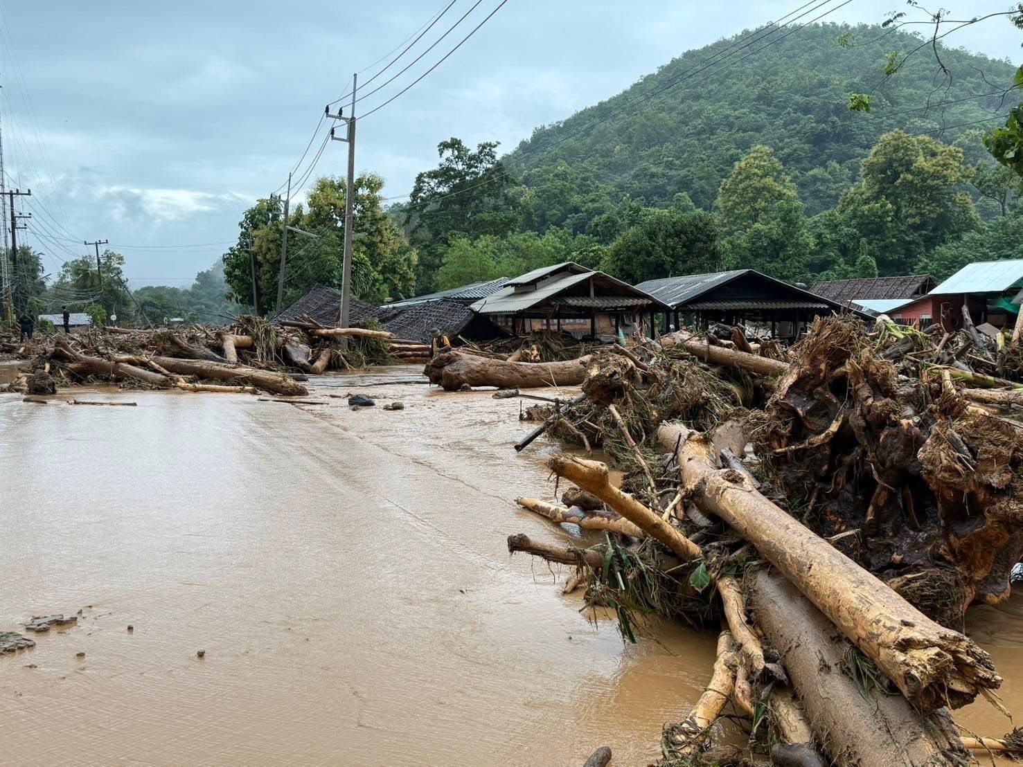 เกิดเหตุน้ำป่าไหลหลากพัดพาต้นไม้และท่อนไม้จำนวนมากลงมากีดขวางเส้นทาง บนทางหลวงหมายเลข 108 ตอน แม่สุริน – ปางหมู ระหว่าง กม. 340+000 ถึง กม. 341+000