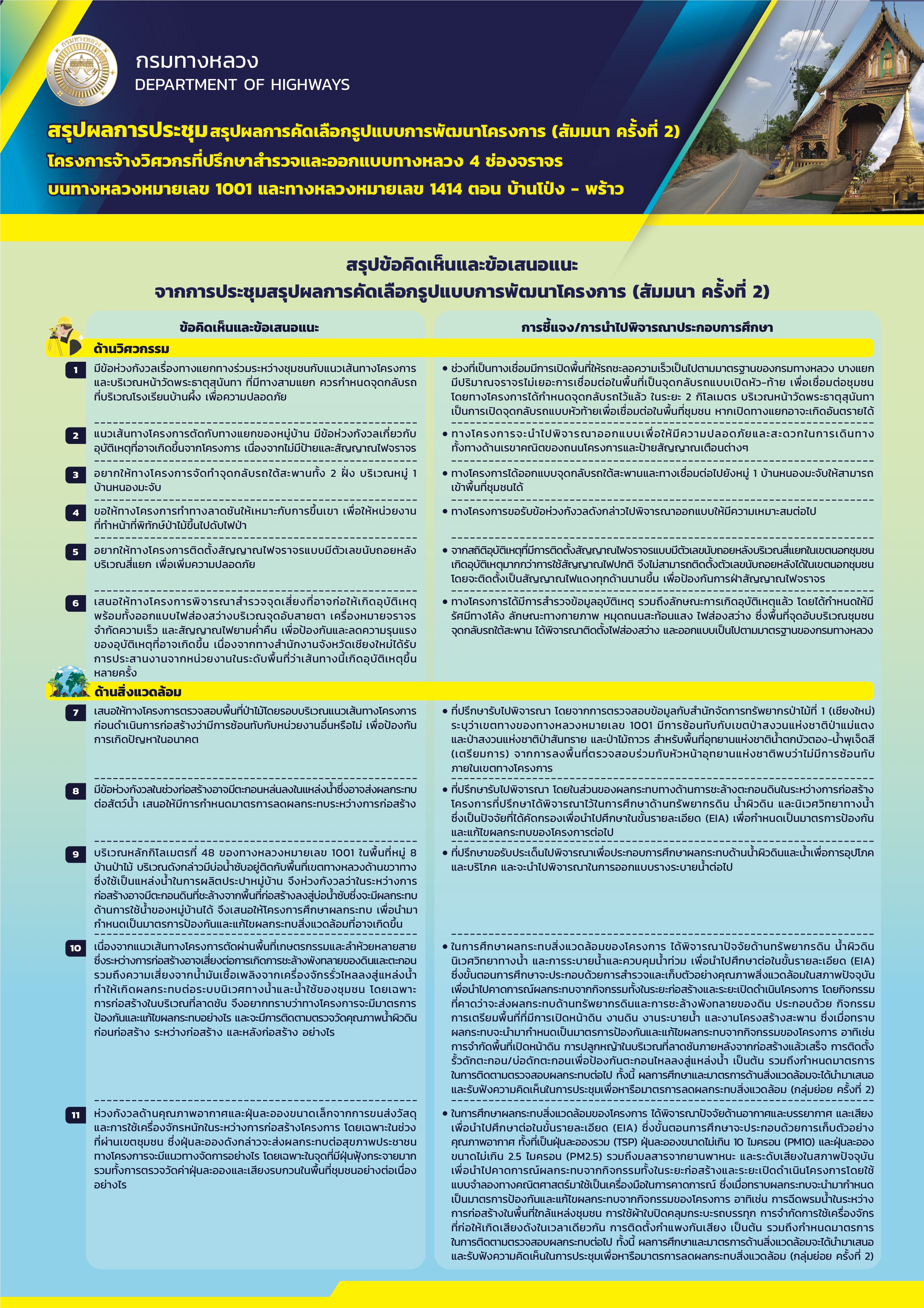 กรมทางหลวง สรุปผลการประชุม “สรุปผลการคัดเลือกรูปแบบการพัฒนาโครงการ (สัมมนา ครั้งที่ 2) โครงการ จ้างวิศวกรที่ปรึกษาสำรวจและออกแบบทางหลวง 4 ช่องจราจร บนทางหลวงหมายเลข 1001 และ 1414 ตอน บ้านโป่ง – พร้าว”