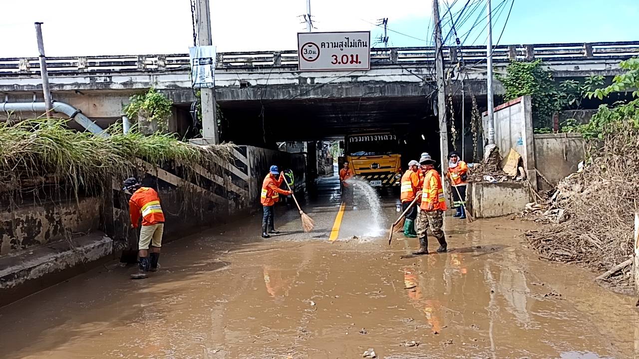 202 07/10/2567 กรมทางหลวง สรุปสถานการณ์น้ำท่วมประจำวันที่ 7 ต.ค. 67 พบทางหลวงทางภาคเหนือ ผ่านไม่ได้ 5 แห่ง สอบถามเส้นทางโทร 1586