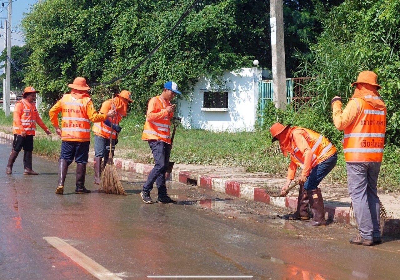 200 09/10/2567 ฟื้นฟูเส้นทาง! กรมทางหลวงล้างถนนสายหลัก จ.เชียงใหม่หลังน้ำลด