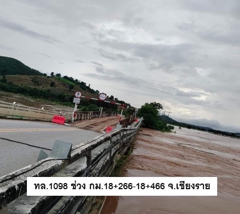 กรมทางหลวง สรุปสถานการณ์น้ำท่วมวันที่ 21 ก.ย. 67 พบว่าทางหลวงถูกน้ำท่วมในพื้นที่จังหวัดเชียงราย การจราจรผ่านไม่ได้ 2 แห่ง สอบถามเส้นทางโทร 1586