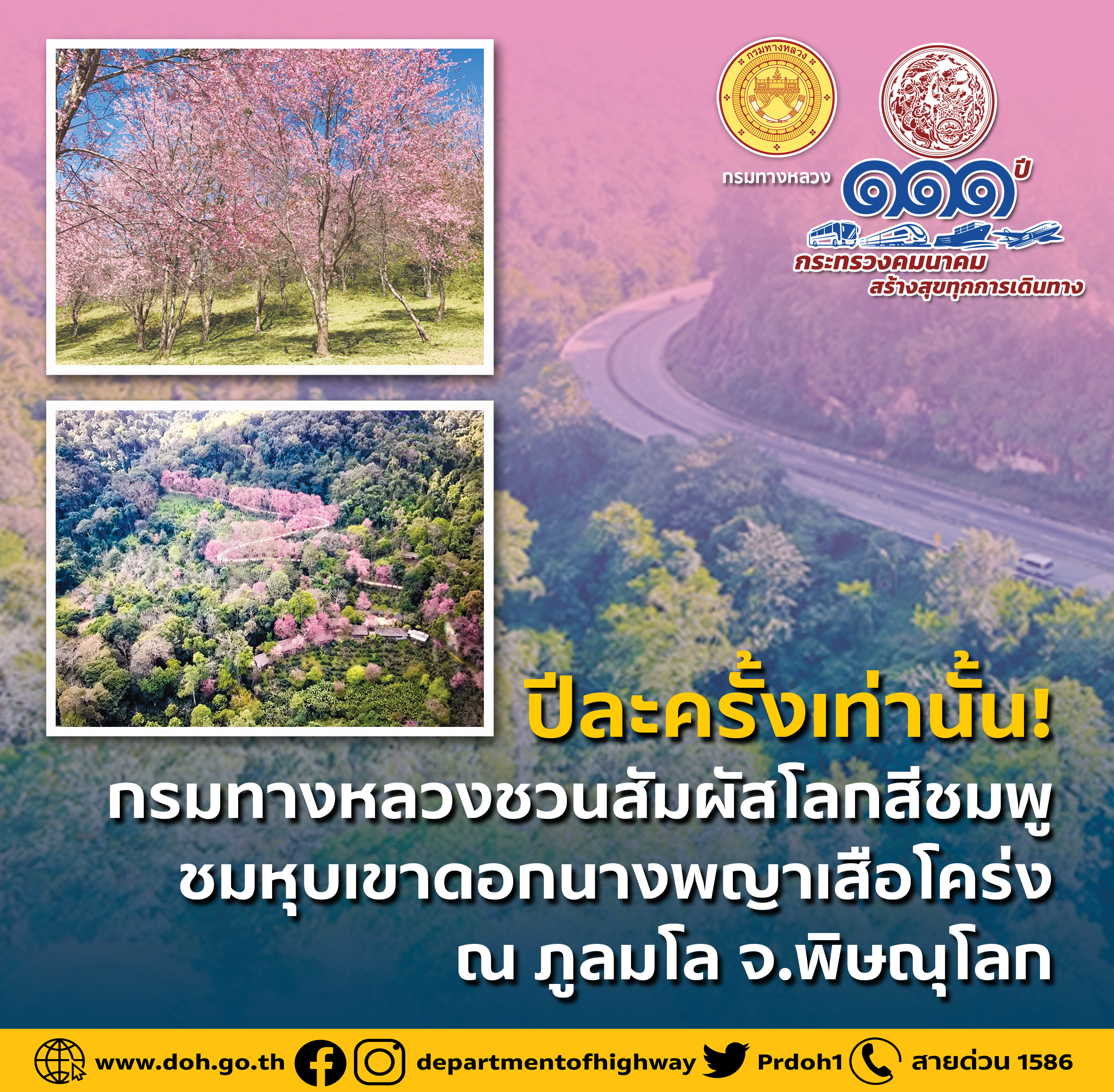 ปีละครั้งเท่านั้น! กรมทางหลวงชวนสัมผัสโลกสีชมพู ชมหุบเขาดอกนางพญาเสือโคร่ง ณ ภูลมโล จ.พิษณุโลก
