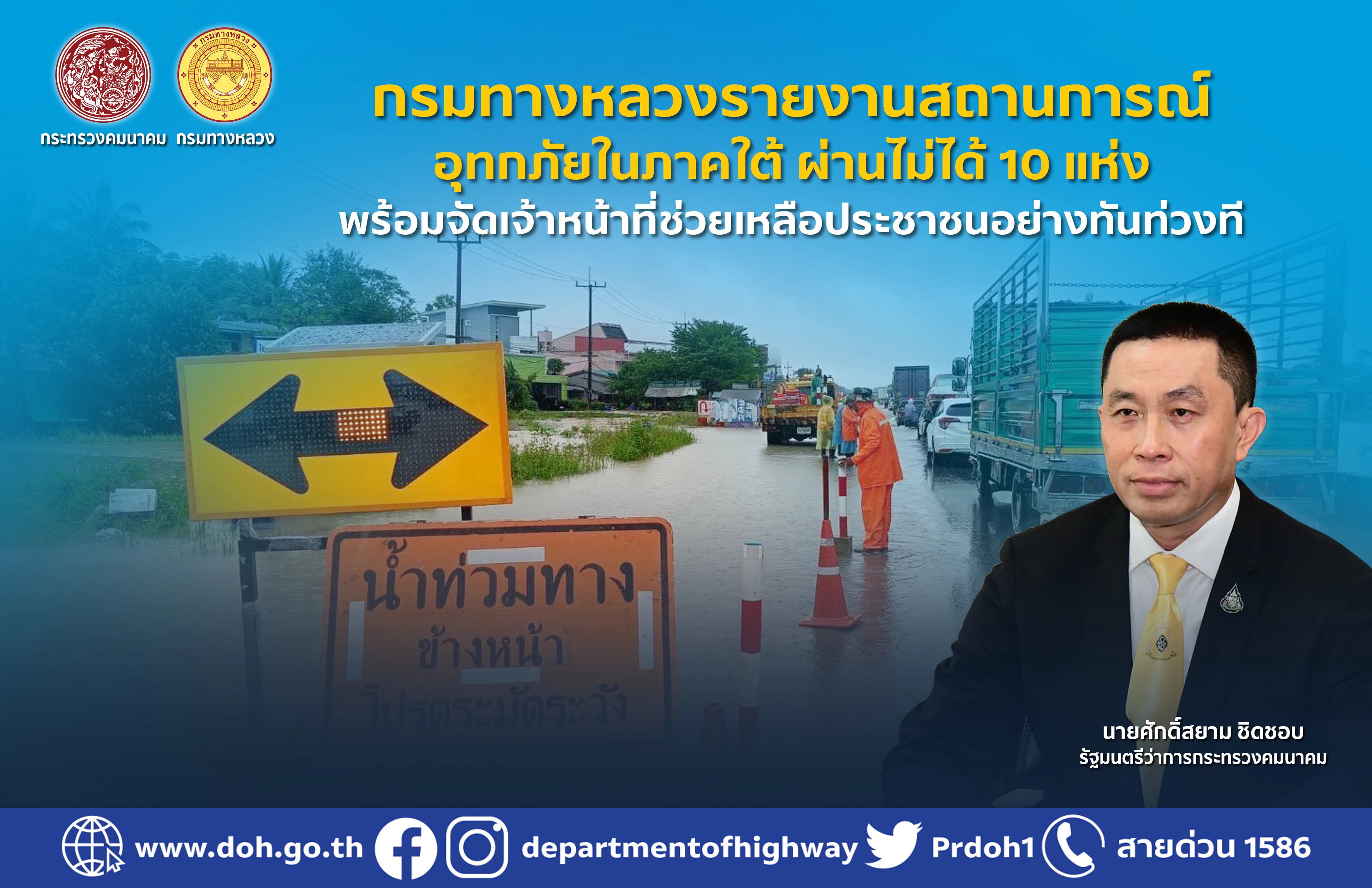 379 19/12/2565 กรมทางหลวงรายงานสถานการณ์อุทกภัยในภาคใต้ ผ่านไม่ได้ 10 แห่ง พร้อมจัดเจ้าหน้าที่ช่วยเหลือประชาชนอย่างทันท่วงที