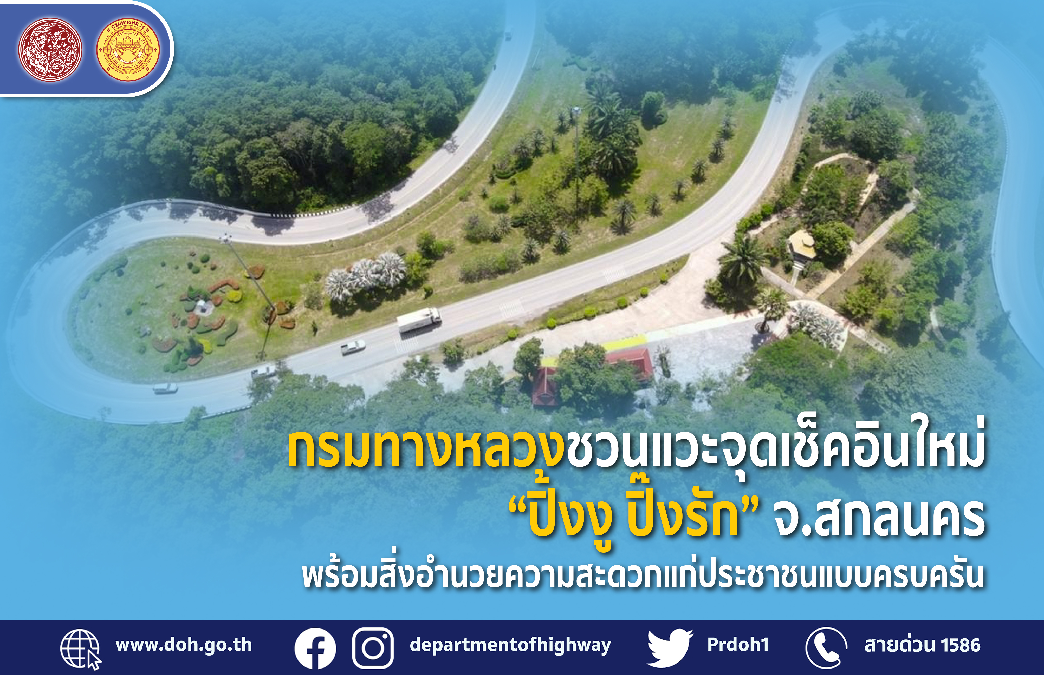 557 28/12/2564 กรมทางหลวงชวนแวะจุดเช็คอินใหม่ “ปิ้งงู ปิ๊งรัก” จ.สกลนคร พร้อมสิ่งอำนวยความสะดวกแก่ประชาชนแบบครบครัน