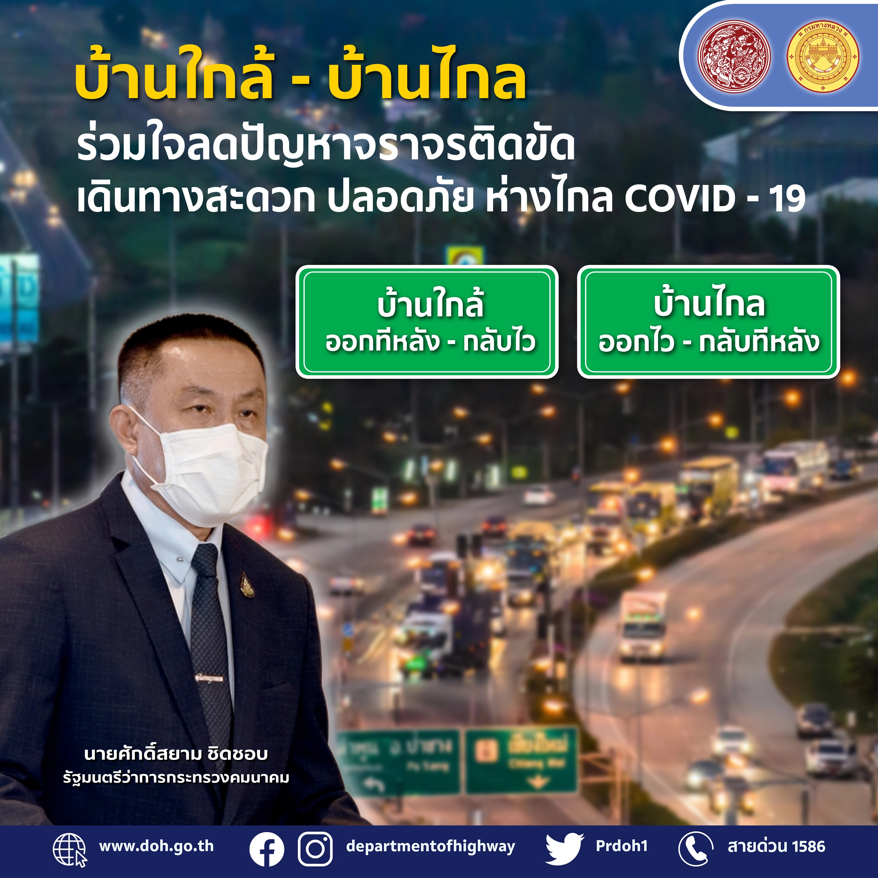 รมว.คมนาคม เชิญชวนประชาชนร่วมรณรงค์“สงกรานต์ 2565 บ้านใกล้-บ้านไกล ร่วมใจลดปัญหาจราจรติดขัด” เดินทางสะดวกปลอดภัยห่างไกล COVID-19 แนะบ้านใกล้ออกทีหลัง-กลับไว บ้านไกลออกไว-กลับทีหลัง