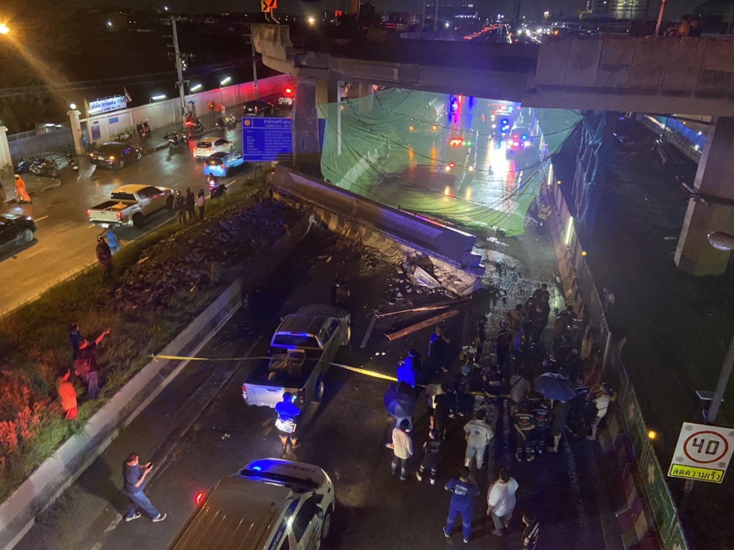 กรมทางหลวง ขอแสดงความเสียใจอย่างสุดซึ้งกับครอบครัวผู้เสียชีวิต และผู้ที่ได้รับบาดเจ็บจากเหตุการณ์ในครั้งนี้ โดยในวันพรุ่งนี้ (1 ส.ค. 65) จะตั้งกรรมการตรวจสอบรายละเอียดข้อเท็จจริง วิเคราะห์สาเหตุที่เกิดขึ้นโดยวิศวกรผู้เชี่ยวชาญ ให้รายงานผลภายใน 14 วัน และให้ระงับการซ่อมแซมโครงสร้างสะพานกลับรถนี้ รวมทั้งปิดการจราจรช่องทางหลักขาเข้าไว้ก่อน จนกว่าจะมีความมั่นใจในความปลอดภัย และได้สั่งการให้ตรวจสอบ ขั้นตอนการทำงาน วัสดุชิ้นส่วนงานก่อสร้าง เครื่องมือเครื่องจักร และเจ้าหน้าที่ที่ปฏิบัติงาน ให้มีความพร้อม หากพบว่าส่วนใดส่วนหนึ่งไม่พร้อม ไม่ปลอดภัย ให้หยุดงานก่อสร้างทันที โดยเน้นย้ำให้ใช้มาตรการความปลอดภัยระหว่างการก่อสร้างอย่างสูงสุด ซึ่งมีกว่า 200 โครงการ ทั่วประเทศ เพื่อป้องกันและไม่ให้เกิดอุบัติเหตุ หรือผลกระทบด้านความปลอดภัยต่อประชาชนผู้ใช้ทางขึ้นอีก ทั้งนี้กรมทางหลวงพร้อมที่จะรับผิดชอบเยียวยาให้กับผู้ประสบเหตุอย่างเต็มที่ และขออภัยประชาชนกับเหตุการณ์ที่เกิดขึ้นครั้งนี้