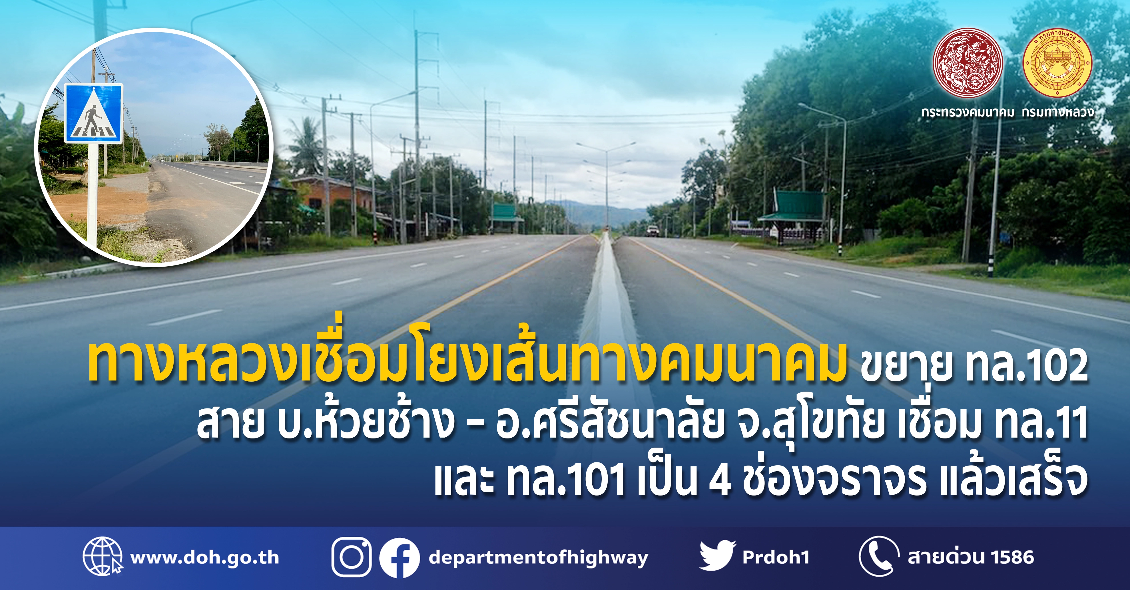 นายสราวุธ ทรงศิวิไล อธิบดีกรมทางหลวง เปิดเผยว่า ตามที่นายศักดิ์สยาม ชิดชอบ รัฐมนตรีว่าการกระทรวงคมนาคมได้มอบนโยบายการพัฒนาโครงสร้างพื้นฐานด้านคมนาคมขนส่งทางถนนในพื้นที่ภาคเหนือ ทางหลวงหมายเลข 102 สาย บ.ห้วยช้าง – อ.ศรีสัชนาลัย นั้น มีความสำคัญเป็นทางหลวงที่เชื่อมโยงระหว่าง ทล. 11 และ 101 ซึ่งสนับสนุนการเดินทางระหว่าง จังหวัดสุโขทัยกับจังหวัดอุตรดิตถ์ เนื่องจากเส้นทางดังกล่าวเดิมมีขนาด 2 ช่องจราจร (ไป – กลับ) ลักษณะเส้นทางบางช่วงเป็นภูเขาที่ลาดชันสูงและคดโค้ง ทำให้เกิดอุบัติเหตุบ่อยครั้ง จึงจำเป็นต้องขยายเส้นทางเพื่อให้ประชาชนได้รับความสะดวกปลอดภัย รองรับปริมาณการจราจรและการขยายตัวทางเศรษฐกิจพื้นที่ภาคเหนือไปสู่ภูมิภาคต่างๆ เพื่อสนับสนุนยุทธศาสตร์ชาติ 20 ปี ในด้านการสร้างความสามารถในการแข่งขันของประเทศ