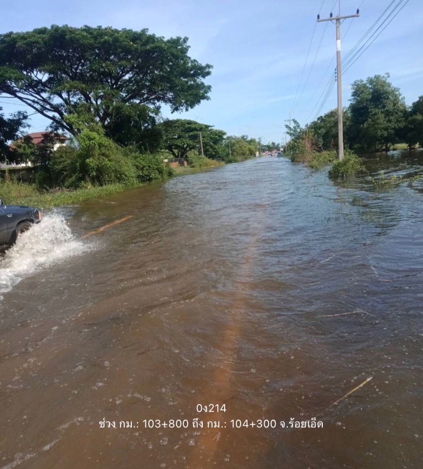 -ทางหลวงหมายเลข 23 ตอน เขื่องใน - อุบลราชธานี ในพื้นที่ อ.เมือง ช่วง กม.ที่ 274+840 น้ำกัดเซาะข้างท่อเหลี่ยม ทำให้ถนนทรุด ปิดการจราจรขาออก ใช้ทางเบี่ยง