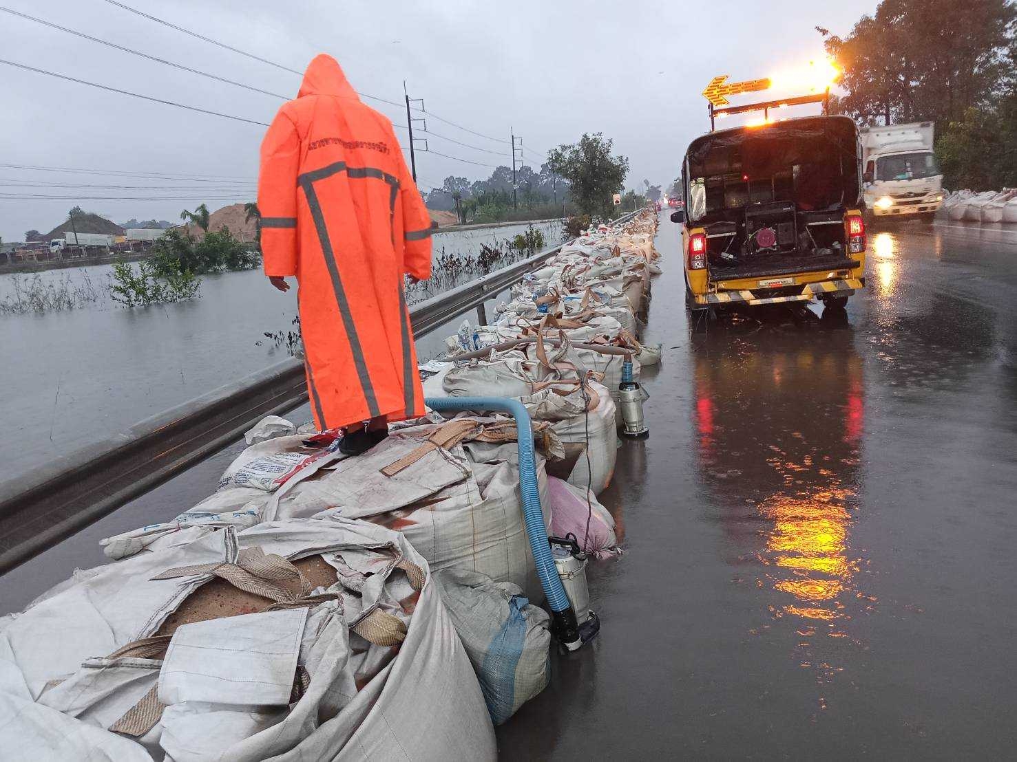 นายสราวุธ ทรงศิวิไล อธิบดีกรมทางหลวง เปิดเผยว่า จากสถานการณ์อุกภัยบนทางหลวงที่วิกฤตหนักในจังหวัดอุบลราชธานี กรมทางหลวงได้จัดเจ้าหน้าที่เฝ้าระวัง และสูบน้ำที่ซึมเข้าผิวทาง บนทางหลวงหมายเลข 23 ตอน เขื่องใน - อุบลราชธานี ตลอด 24 ชั่วโมง เพื่อรักษาสภาพถนนให้ประชาชนเดินทางได้อย่างปลอดภัย พร้อมดำเนินการภารกิจกรอกทราย เสริมความแข็งแรงของแนวกระสอบทราย รวมระยะทางวางกระสอบทรายได้ประมาณ 2,814 เมตร บนทางหลวงหมายเลข 231 ตอน ถนนวงแหวนรอบเมืองอุบลราชธานี (วงแหวนตะวันออกบัวท่า - บัวเทิง) (ข้อมูลวางกระสอบทราย ณ วันที่ 15 ต.ค. 65) และได้จัดทำโรงครัวเพื่อบริการจิตอาสาที่ได้ร่วมกรอกกระสอบทราย พร้อมกันนั้นยังได้สั่งการให้ผู้บริหารลงพื้นที่เพื่อติดตามสถานการณ์อย่างใกล้ชิด พร้อมนำเครื่องจักรและวัสดุอุปกรณ์เข้าให้การช่วยเหลือโดยเร็วที่สุด นอกจากนี้ยังติดตั้งป้ายเตือนและอุปกรณ์อำนวยความปลอดภัยแก่ผู้ใช้เส้นทาง ในขณะที่บางพื้นที่ก็มีการล้างทำความสะอาดถนนหลังจากน้ำลดลงบ้างแล้ว เพื่อบรรเทาความเดือดร้อนของประชาชนให้ได้รับความสะดวกปลอดภัยในการสัญจรโดยเร็วที่สุดอย่างต่อเนื่อง ตามข้อสั่งการของ นายศักดิ์สยาม ชิดชอบ รัฐมนตรีว่าการกระทรวงคมนาคม ที่มีความห่วงใย จากสถานการณ์ฝนตกหนักในหลายพื้นที่ พร้อมทั้งเฝ้าระวังตลอด 24 ชั่วโมง เพื่อช่วยประชาชนอย่างทันท่วงที พร้อมกันนี้กรมทางหลวง ได้ทำการสรุปสถานการณ์อุทกภัยและดินสไลด์บนทางหลวง โดย สถานการณ์ประจำวันที่ 16 ตุลาคม 2565 เวลา 12.30 น. พบทางหลวงถูกน้ำท่วม/ดินสไลด์ ในพื้นที่ 15 จังหวัด ได้แก่ จ.ขอนแก่น, จ.ศรีสะเกษ, จ.นครราชสีมา ,จ.หนองบัวลำภู , จ.อุบลราชธานี, จ.มหาสารคาม, จ.ยโสธร, จ.นครปฐม, จ.สระบุรี, จ.สุพรรณบุรี, จ.อ่างทอง, จ.พระนครศรีอยุธยา, จ.สิงห์บุรี และ จ.นครสวรรค์จำนวน 32 สายทาง 42 แห่ง การจราจรผ่านไม่ได้ 31 แห่ง ดังนี้