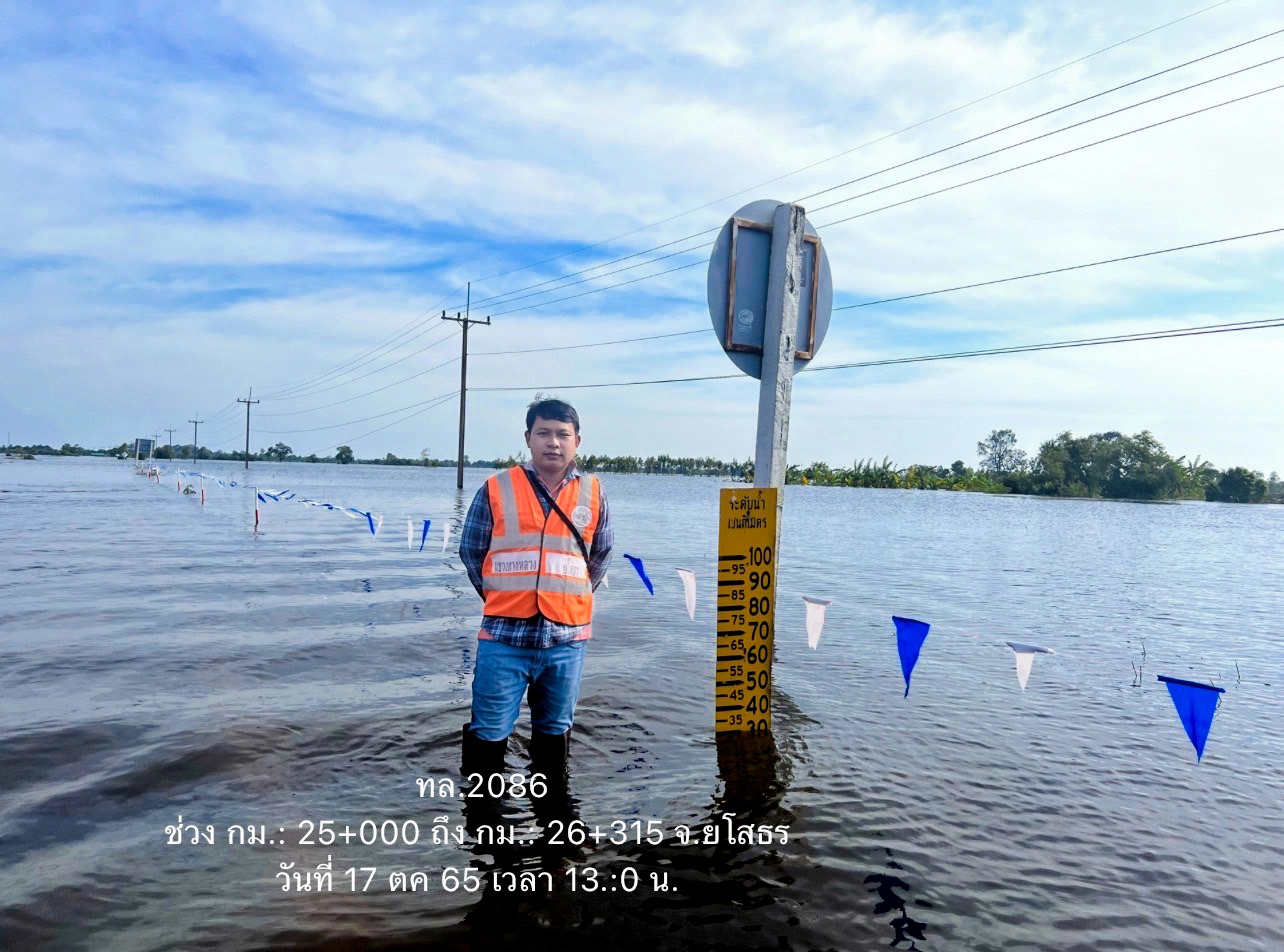 - ทางหลวงหมายเลข 226 ตอน ห้วยขะยุง – วารินชำราบ ในพื้นที่ อ.วารินชำราบ ช่วง กม.ที่ 319+600 – 319+800 ระดับน้ำ 135 - 140 ซม. ใช้ทางเลี่ยง ทล.2178