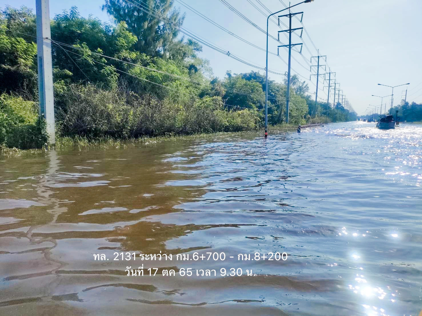 - ทางหลวงหมายเลข 2131 ตอน บ้านสะอาด – เหล่านางาม ในพื้นที่ อ.เมือง ช่วง กม.ที่ 6+700 – 8+200 ระดับน้ำ 30 - 40 ซม. การจราจรไม่สามารถผ่านได้ ให้ใช้เส้นทางเลี่ยงท้องถิ่นแทน