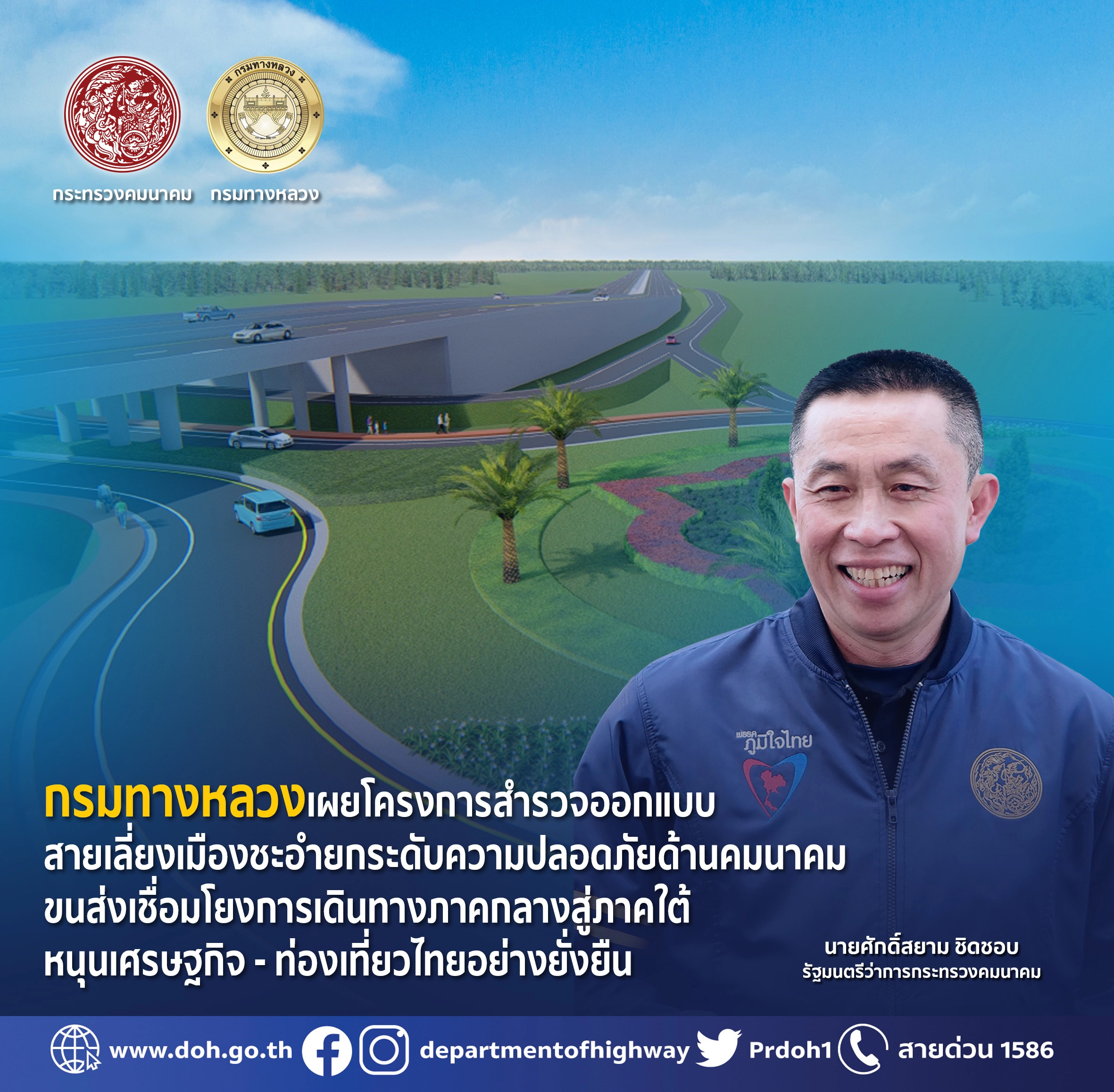 กรมทางหลวงเผยโครงการสำรวจออกแบบสายเลี่ยงเมืองชะอำ ยกระดับความปลอดภัยด้านคมนาคมขนส่ง เชื่อมโยงการเดินทางภาคกลางสู่ภาคใต้ หนุนเศรษฐกิจ-ท่องเที่ยวไทยอย่างยั่งยืน