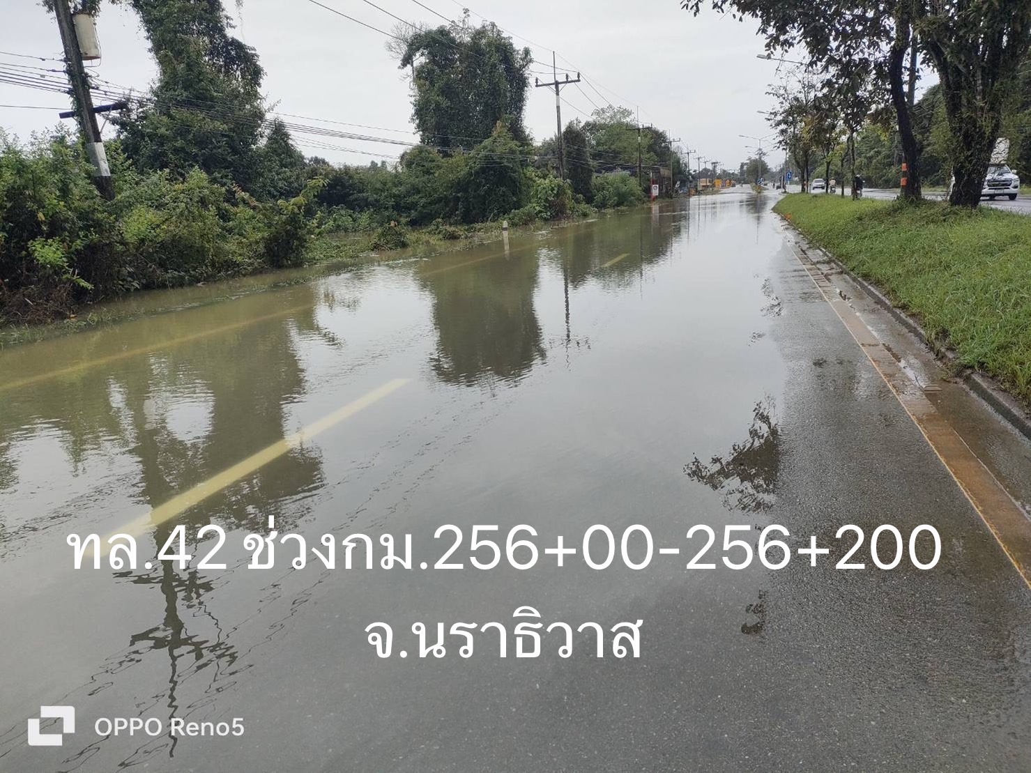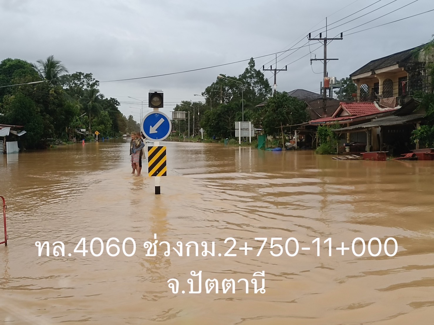 - บนทางหลวงหมายเลข 4092 ตอน จะร้งตาดง – มายอ ในพื้นที่ อ.ทุ่งยางแดง ช่วง กม.19+085 – กม.19+700 ระดับน้ำ 40 ซม. แนะนำใช้ทางเลี่ยงท้องถิ่น พร้อมเจ้าหน้าที่คอยอำนวยความสะดวกและปลอดภัย