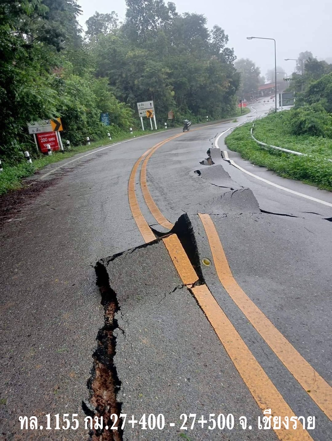 จังหวัดเชียงราย ดินสไลด์ทำให้คันทางทรุดตัว