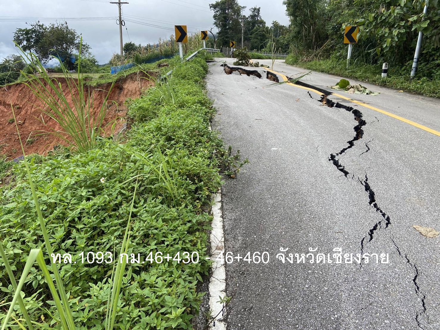เชียงราย เกิดเหตุดินสไลด์ทำให้ผิวทางทรุดตัว ไม่มีเส้นทางเลี่ยงทดแทน