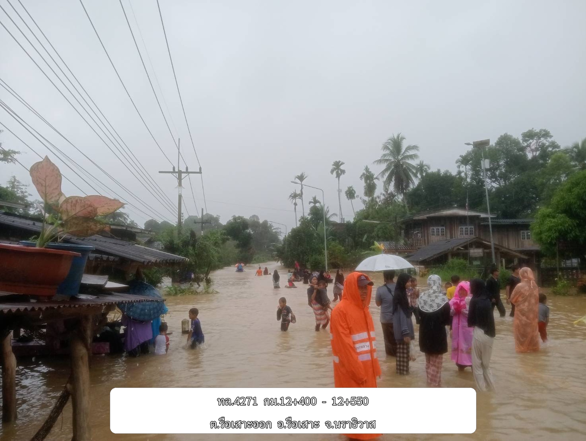 •ทล.4084 นราธิวาส – สะปอม กม.ที่ 8+430 - 8+530 อ.เมือง จ.นราธิวาส ระดับน้ำ 20 ซม.