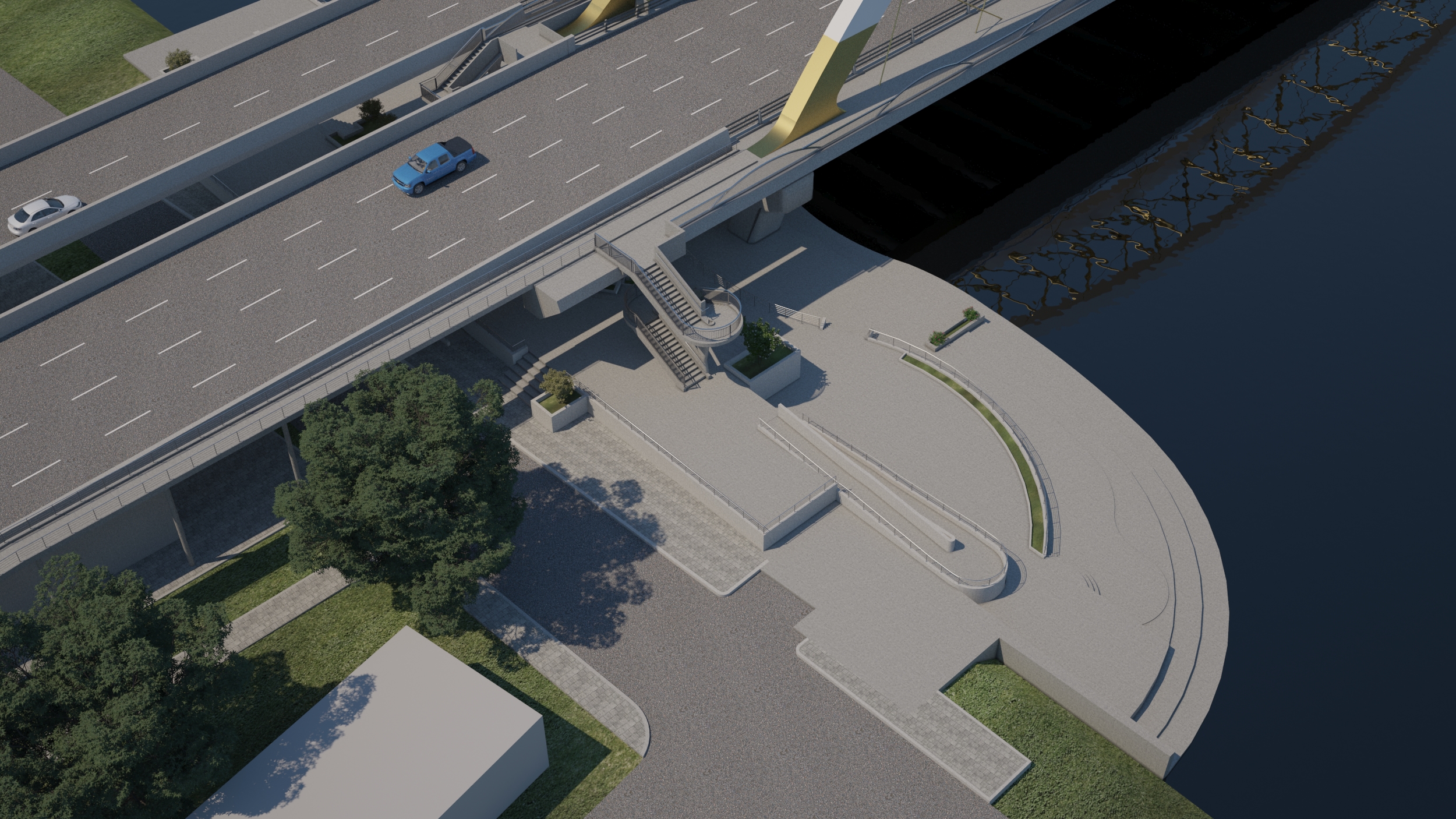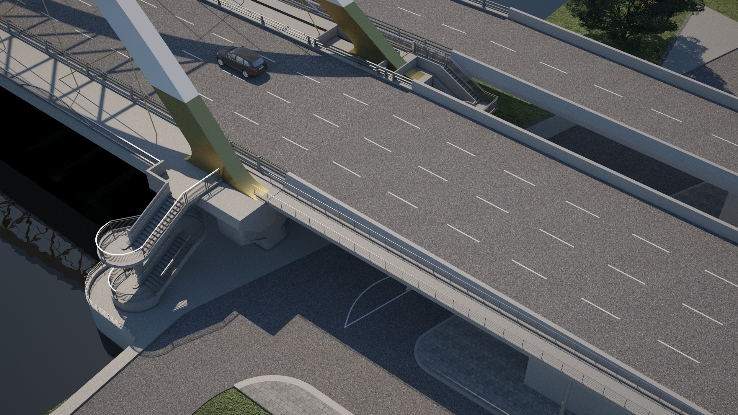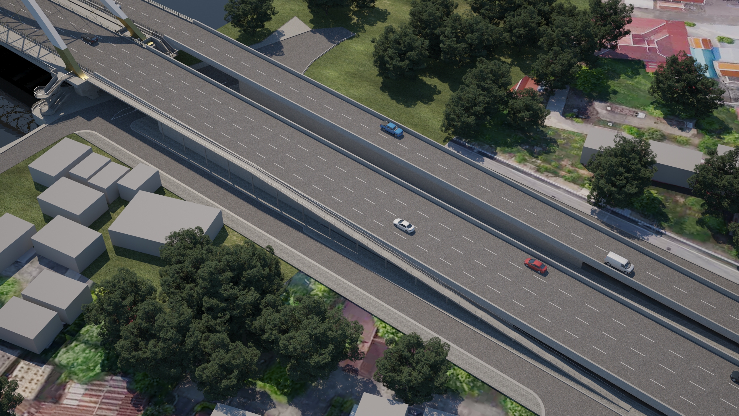 - ก่อสร้างสะพานเชื่อมทางขึ้นลง (Approach Bridge) เป็นสะพานที่เชื่อมต่อถนนหรือทางลาดเข้ากับตัวสะพานหลัก ทำหน้าที่รองรับการจราจรที่เข้าและออกจากสะพานหลัก ช่วยกระจายแรงและลดผลกระทบจากการเปลี่ยนแปลงความสูงระหว่างถนนกับสะพาน สร้างด้วยคอนกรีตอัดแรงแบบ (I - Girder) มีเสาเข็มเจาะเป็นฐานราก มีทั้งหมด 6 ช่วง แบ่งเป็นช่วงยาว 20 เมตร จำนวน 3 ช่วง และช่วงยาว 25 เมตร จำนวน 3 ช่วง รวมความยาว 135 เมตร ขนาด 3 ช่องจราจร (ขาเข้าตัวเมือง) ขนาดความกว้าง 3.50 เมตร ไหล่ทาง 2.50 เมตร ผิวทางแบบแอสฟัลต์คอนกรีต นอกจากนี้ ยังมีการก่อสร้างเชิงลาดคอสะพาน กำแพงกันดิน เพื่อให้การเชื่อมต่อระหว่างสะพานกับถนนเป็นไปอย่างราบรื่น ปลอดภัย และลดการทรุดตัวบริเวณรอยต่อ" เพื่อเพิ่มประสิทธิภาพการจราจรและลดปัญหาการจราจรติดขัด