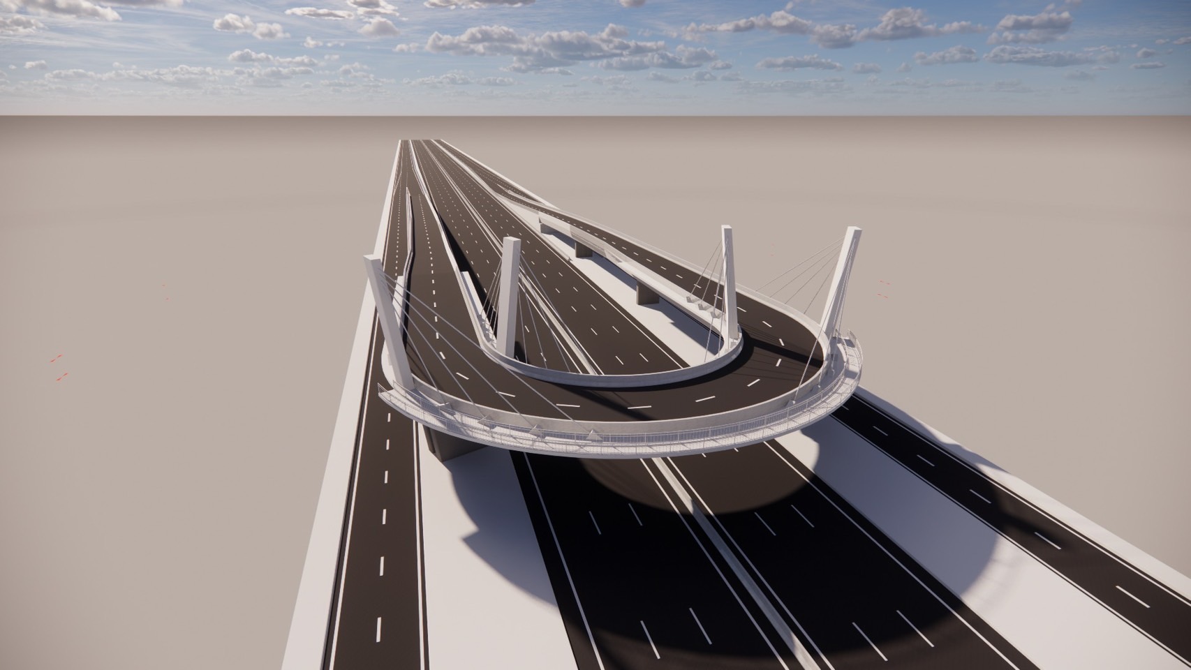 • สะพาน: เป็นสะพานกลับรถแบบเคเบิ้ล มีลักษณะโค้ง และมีความยาวรวมประมาณ 330 เมตร