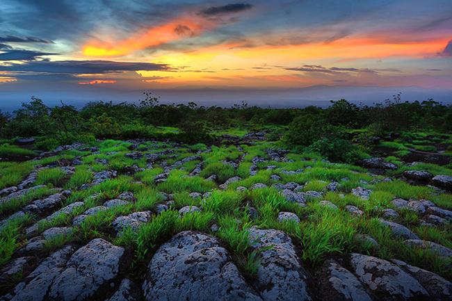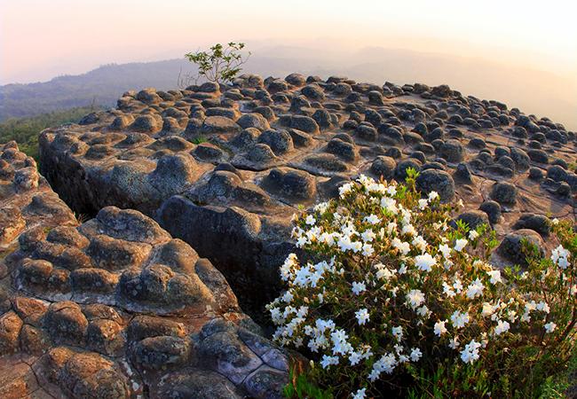 - ลานหินปุ่ม แผ่นหินกว้าที่เต็มไปด้วยหินปุ่มกลมรีเรียงรายราวมีกับมีการจัดวาง