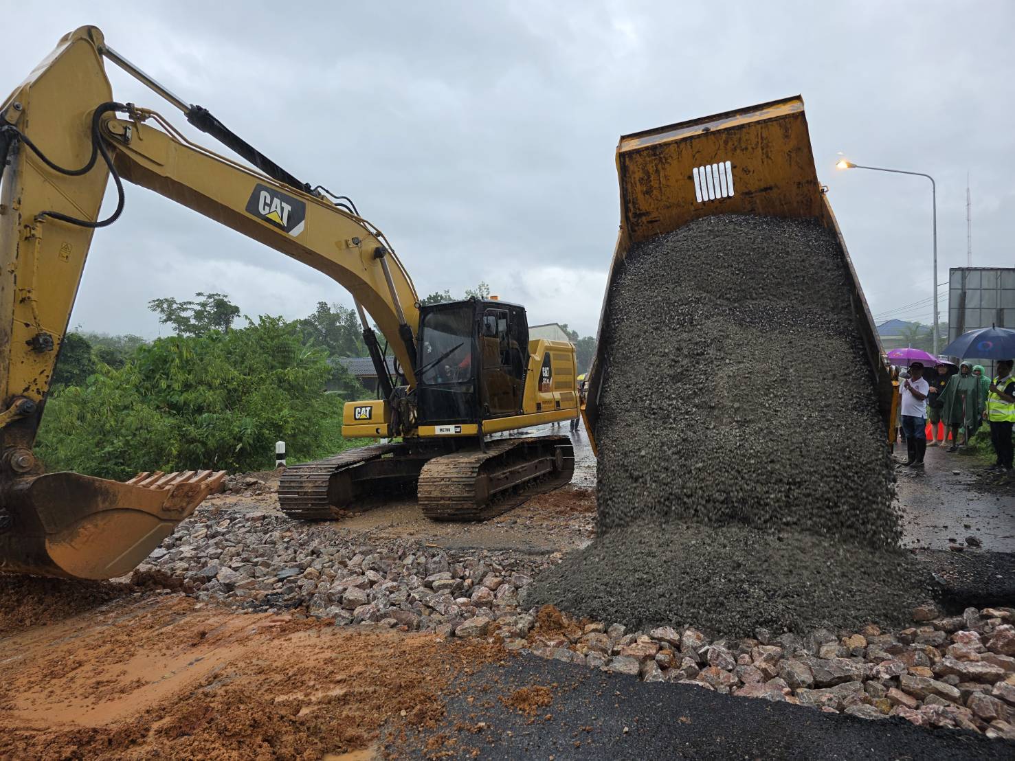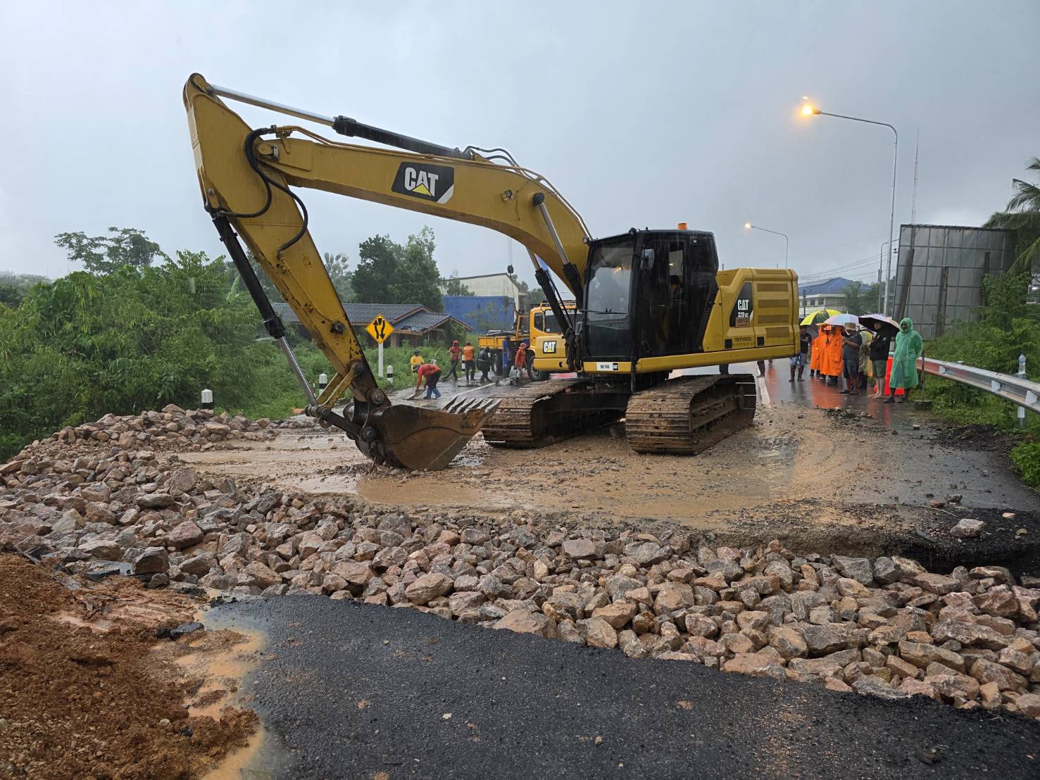 ศูนย์ฯ ได้วางแผนและดำเนินการแก้ไขอย่างเร่งด่วนในวันอาทิตย์ที่ 23 พฤศจิกายน 2568 โดยก่อสร้างเป็นคันทางหิน ( Rock Embankment ) ซึ่งเป็นการขุดเปิดคอสะพานและนำหินใหญ่วางเรียงเพื่อเสริมความมั่นคง และได้ดำเนินการแล้วเสร็จ เปิดให้สัญจรได้ในเวลา 17.00 น.