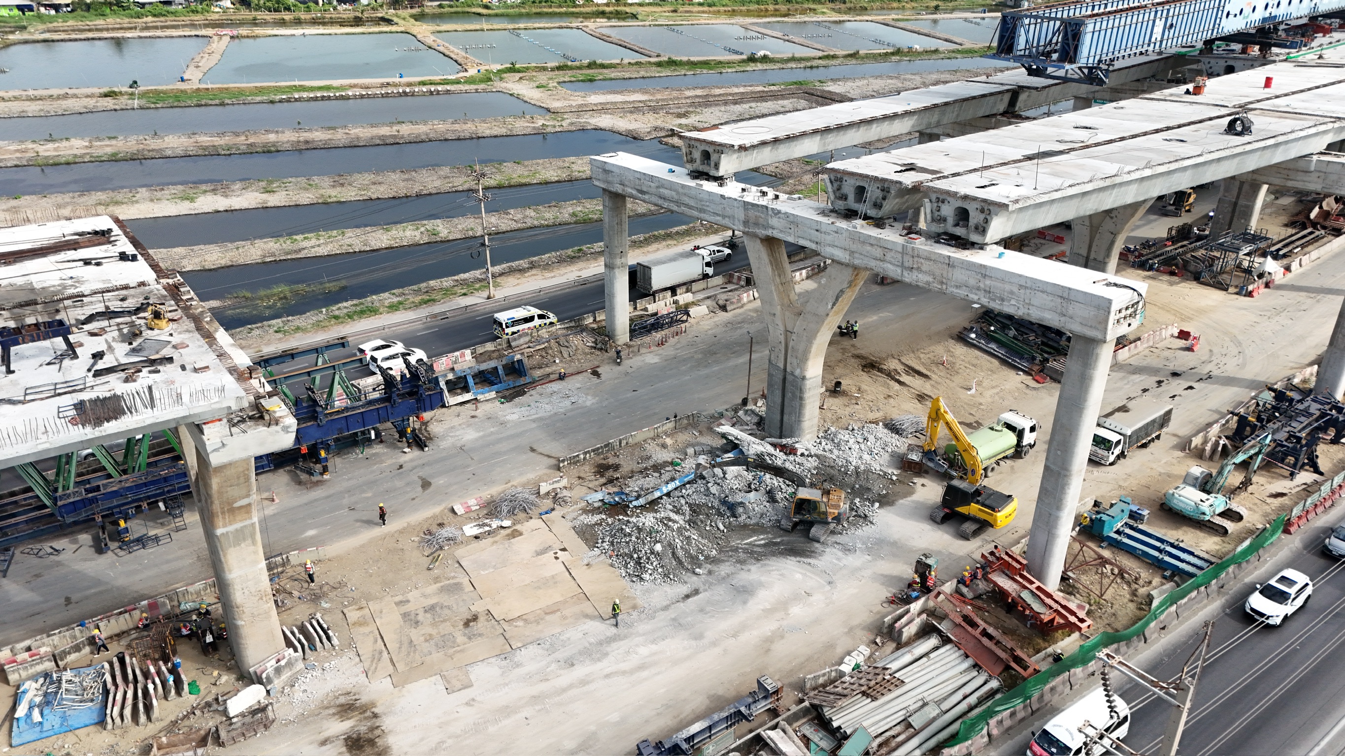 ด้าน นายปิยพงษ์ จิวัฒนกุลไพศาล อธิบดีกรมทางหลวง เปิดเผยรายละเอียดการปฏิบัติงานรื้อถอนพื้นสะพานช่วงที่เสียหายจากเครน LG ถล่มมากระแทก และการเทคอนกรีตเชื่อมสะพานคานยื่นข้ามแม่น้ำท่าจีน (Closure) เพื่อรื้อถอนนั่งร้านชั่วคราว ช่วง กม.29+100 ถึง กม.32+100 ระยะทาง 3 กม. ว่า กรมทางหลวงตระหนักดีว่าการปิดช่องทางหลักนั้น ส่งผลกระทบต่อการเดินทาง จึงได้จัดทำ “แผนบริหารจัดการจราจรและประเมินผลกระทบ เพื่อให้ประชาชนวางแผนการเดินทางได้ชัดเจน ดังนี้