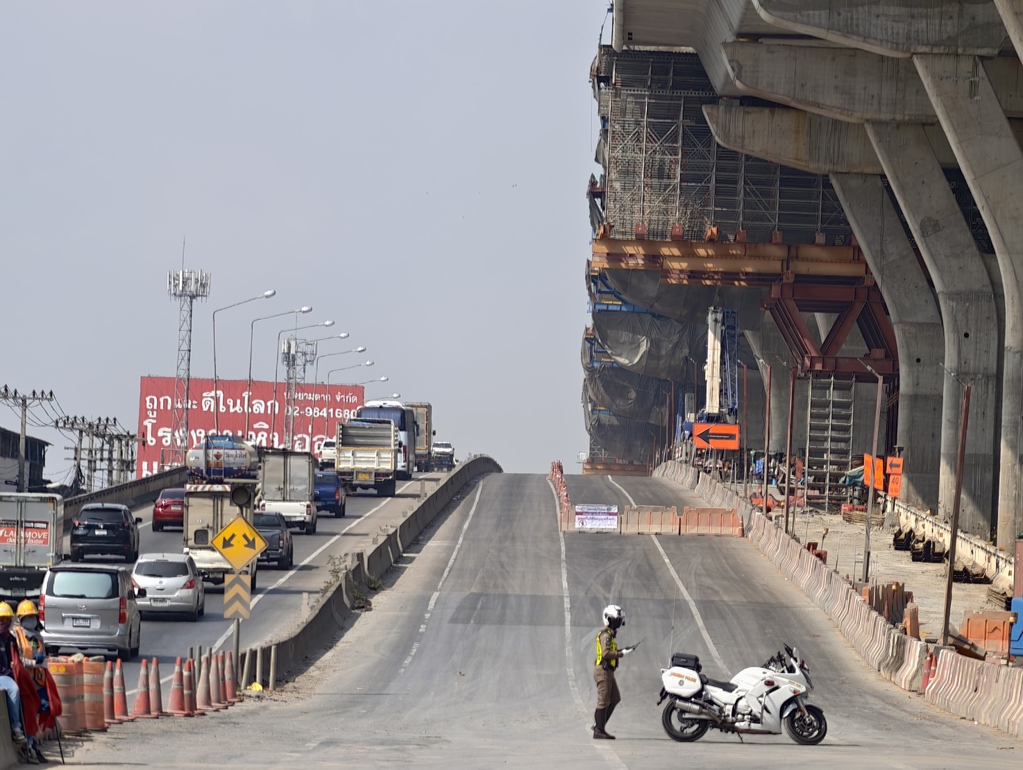 2. การประเมินผลกระทบ จากการคำนวณทางวิศวกรรมจราจร คาดว่าความสามารถในการรองรับปริมาณรถ จะลดลงประมาณ 60% โดยในช่วงเวลาเร่งด่วน คาดว่าจะมีความยาวแถวคอยสะสมประมาณ 4 กิโลเมตร จึงได้วางแผนแก้การจราจร โดยจัดเจ้าหน้าที่ตำรวจและอาสาจราจรประจำจุดทางเบี่ยงตลอด 24 ชม.