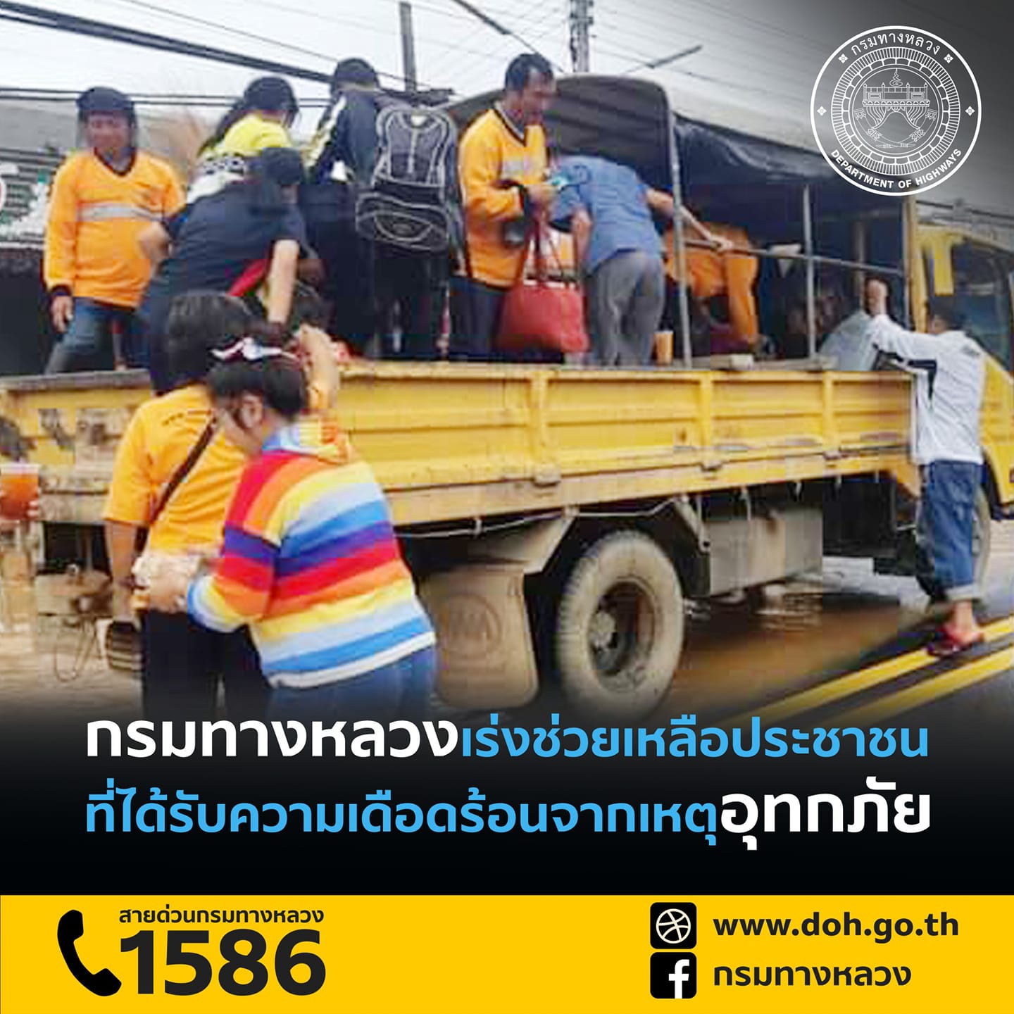 กรมทางหลวงช่วยเคลื่อนย้ายประชาชนที่ได้รับผลกระทบจากเหตุอุทกภัยออกจากพื้นที่เรียบร้อย