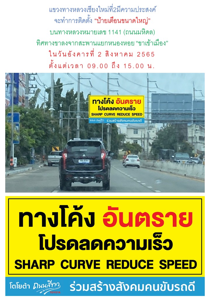 แขวงทางหลวงเชียงใหม่ที่ 2 ดำเนินการติดตั้งป้ายเตือนจุดเสี่ยงทางโค้งอันตราย “ป้ายเตือนขนาดใหญ่”