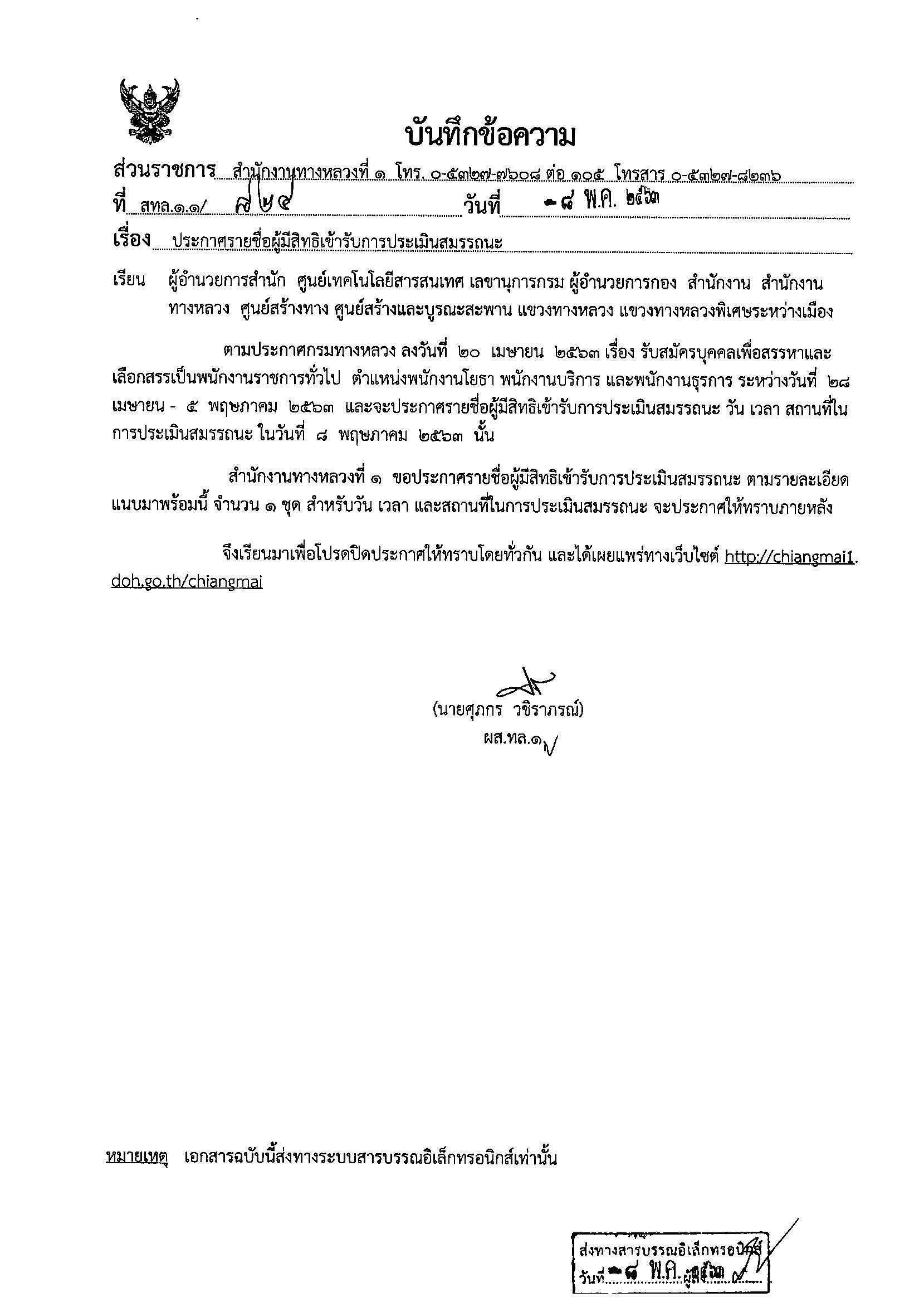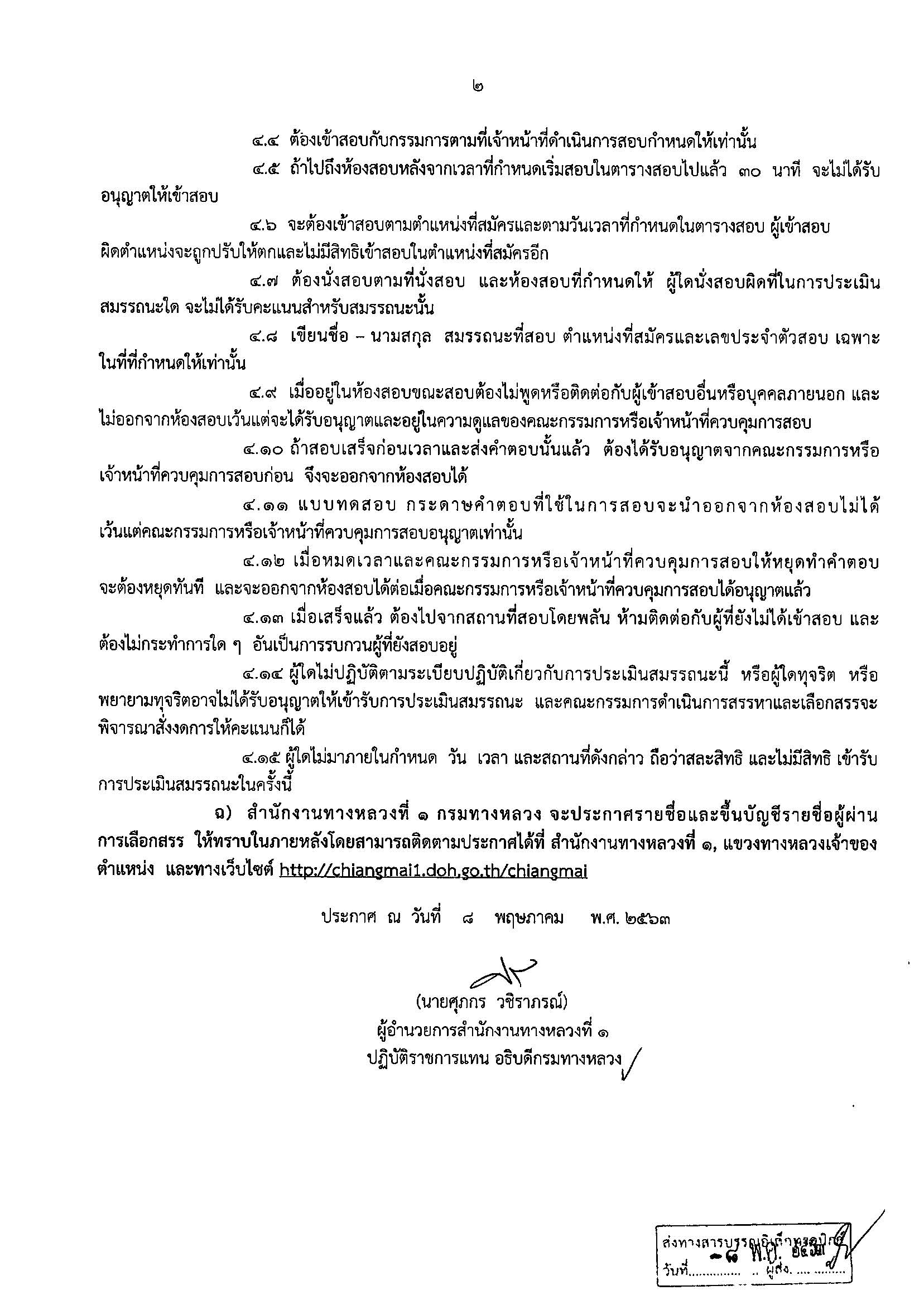 แขวงทางหลวงเชียงใหม่ที่ 2ประกาศรายชื่อผู้มีสิทธิเข้ารับการประเมินสมรรถนะ เพื่อสรรหาและเลือกสรรเป็นพนักงานราชการ ตำแหน่งพนักงานโยธา??สำหรับวัน เวลา และสถานที่ ทางสำนักงานทางหลวงที่ 1 (เชียงใหม่) จะประกาศให้ทราบในภายหลัง