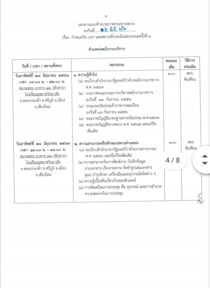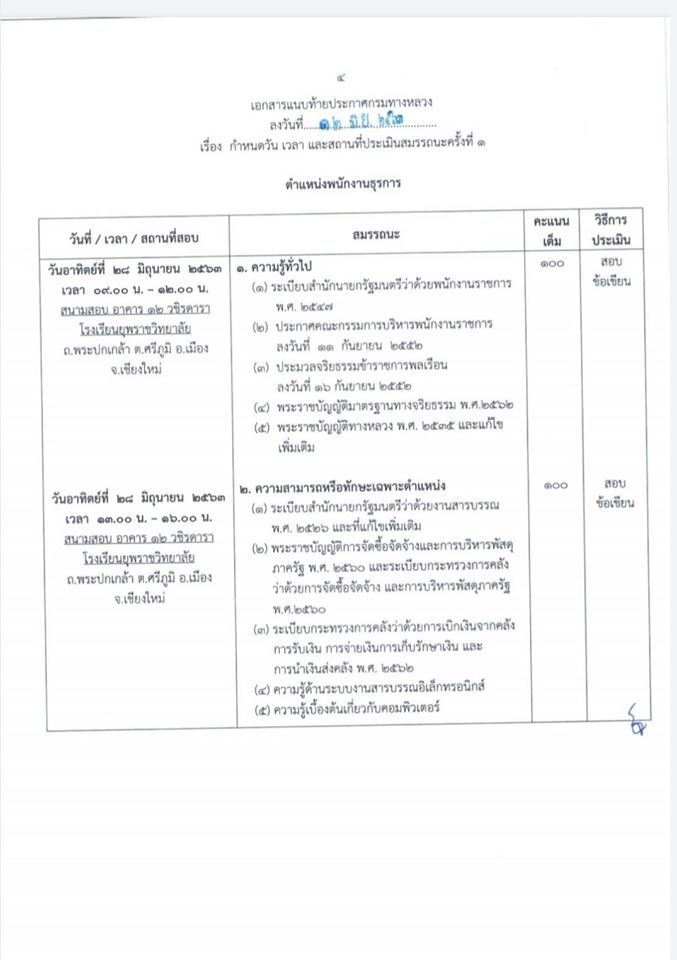 ประกาศกรมทางหลวง เรื่อง กำหนดวันเวลา และสถานที่ในการประเมินสมรรถนะ ครั้งที่ 1
