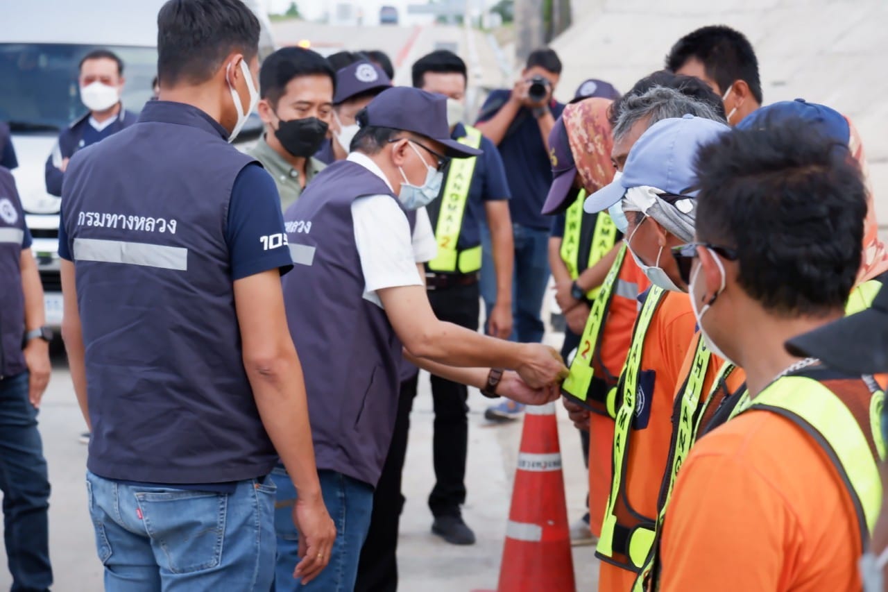 วันที่ 14 สิงหาคม 2565 นายสราวุธ ทรงศิวิไล อธิบดีกรมทางหลวง พร้อมด้วยนายไพฑูรย์ พงษ์ชวลิต รองอธิบดีกรมทางหลวงฝ่ายบริหาร ลงพื้นที่ตรวจติดตามผลดำเนินการแก้ไขปัญหาน้ำท่วมทางและให้ข้อแนะนำแนวทางการบริหารจัดการสถานการณ์ฉุกเฉิน บริเวณทางลอดสะพาน ข้ามแยกแม่กวง ทางหลวงหมายเลข 118 ตัดกับทางหลวง 121 วงแหวนรอบ 3 บ้านแม่กวง ต.สันทรายน้อย อ.สันทราย จ.เชียงใหม่ โดยมีนายวิจารย์ ขุนเสถียร ผู้อำนวยการสำนักงานทางหลวงที่ 1 (เชียงใหม่) พร้อมด้วยคณะผู้บริหาร และผู้อำนวยการแขวงทางหลวงในสังกัด ร่วมติดตามคณะฯ ทั้งนี้ได้ตรวจเยี่ยมและสร้างขวัญกำลังใจให้แก่เจ้าหน้าที่ผู้ปฏิบัติงานแขวงทางหลวงเชียงใหม่ที่ 2