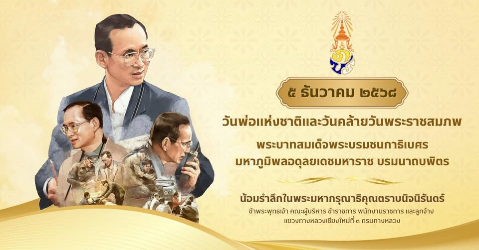 5 ธันวาคม 2568 วันคล้ายวันพระบรมราชสมภพ พระบาทสมเด็จพระบรมชนกาธิเบศร มหาภูมิพลอดุลยเดชมหาราช บรมนาถบพิตร