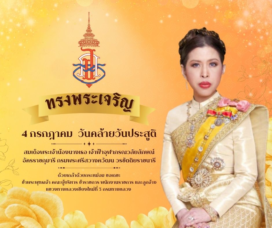 4 กรกฎาคม วันคล้ายวันประสูติ สมเด็จพระเจ้าน้องนางเธอ เจ้าฟ้าจุฬาภรณวลัยลักษณ์ อัครราชกุมารี กรมพระศรีสวางควัฒน วรขัตติยราชนารี