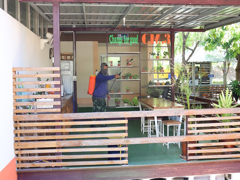 วันอาทิตย์ที่ 18 เมษายน 2564 แขวงทางหลวงเชียงใหม่ที่ 3 ได้ทำการฉีดพ่นน้ำยาฆ่าเชื้อภายในบริเวณอาคารสำนักงาน ห้องประชุม และบริเวณพื้นที่ด้านข้าง เพื่อเป็นการป้องกันการแพร่ระบาดของเชื้อไวรัสโควิด-19