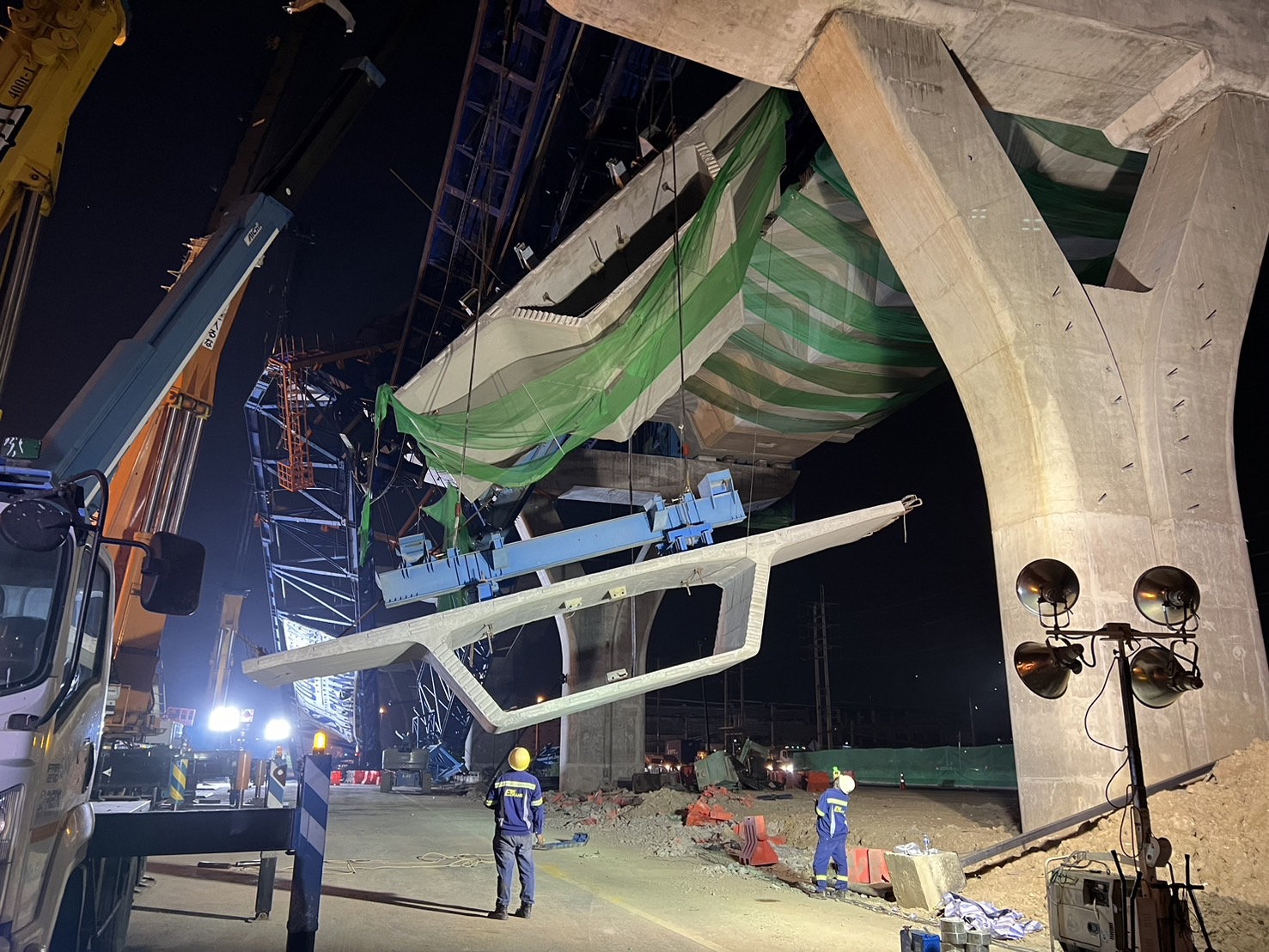 ทั้งนี้ ในการเคลื่อนย้ายโครงสร้างเหล็กที่ได้รับความเสียหายและชิ้นส่วนสะพานที่ยังติดค้างอยู่ กรมทางหลวง และวิศวกรรมสถานแห่งประเทศไทย (วสท.) ได้ร่วมมือกันอย่างใกล้ชิด ได้แก่ การวางแผนการเคลื่อนย้ายชิ้นส่วนโครงสร้างเหล็กและคอนกรีตออกจากพื้นที่ โดยร่วมกับคณะอนุกรรมการสาขาโครงสร้างและสะพาน และคณะอนุกรรมการสาขาวิศวกรรมยกหิ้วและปั้นจั่น วสท., การบินโดรนสำรวจความเสียหายของโครงสร้างเหล็กโดยละเอียดร่วมกับวิศวกรกรมทางหลวง, การร่วมประชุมวางแผนเพื่อหาข้อสรุปในการกำหนดจุดติดตั้งเครนกับทีมงานที่เกี่ยวข้องทุกฝ่าย, และการกำกับดูแลการดำเนินการทั้งหมดร่วมกับทีมวิศวกรผู้เชี่ยวชาญ เพื่อความปลอดภัย และป้องกันการเกิดเหตุซ้ำ