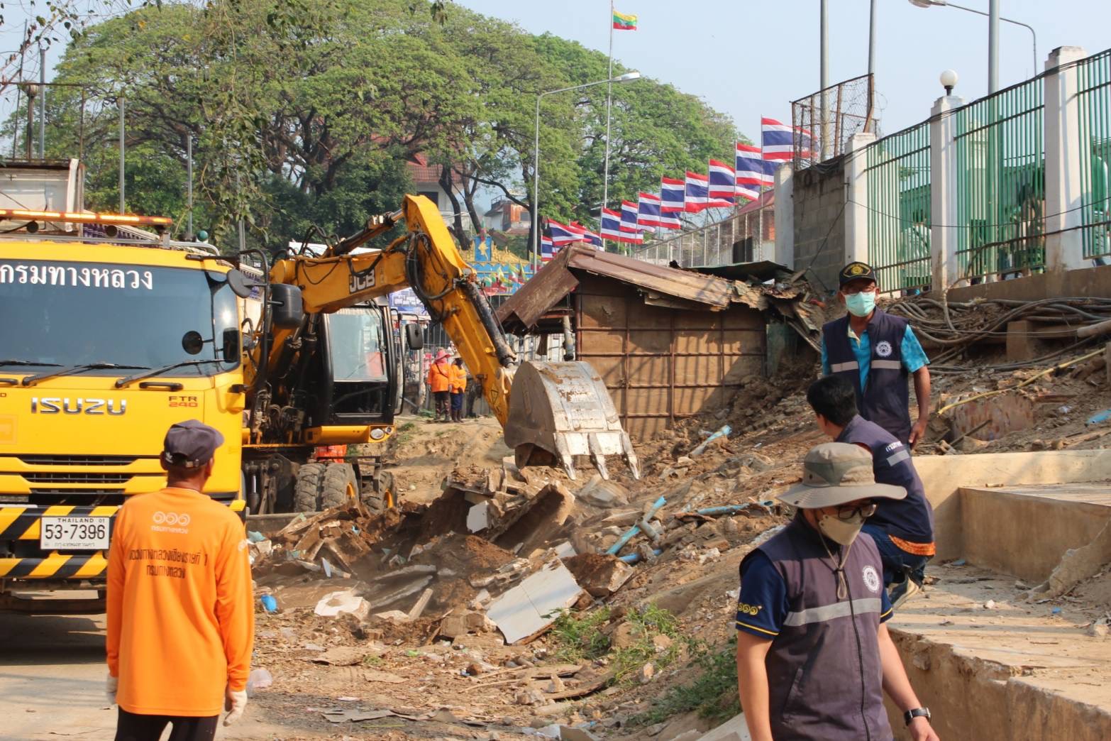 2.การจัดการพื้นที่ด่านพรมแดน: กรมทางหลวงได้ดำเนินการรื้อถอนร้านค้าและสิ่งปลูกสร้างบริเวณด่านพรมแดนแม่สาย สะพานมิตรภาพ แห่งที่ 1 ตามมติที่ประชุมศูนย์บัญชาการเหตุการณ์อุทกภัย วาตภัย และดินโคลนถล่ม อำเภอแม่สาย ร่วมกับหน่วยงานที่เกี่ยวข้องแล้วเสร็จ