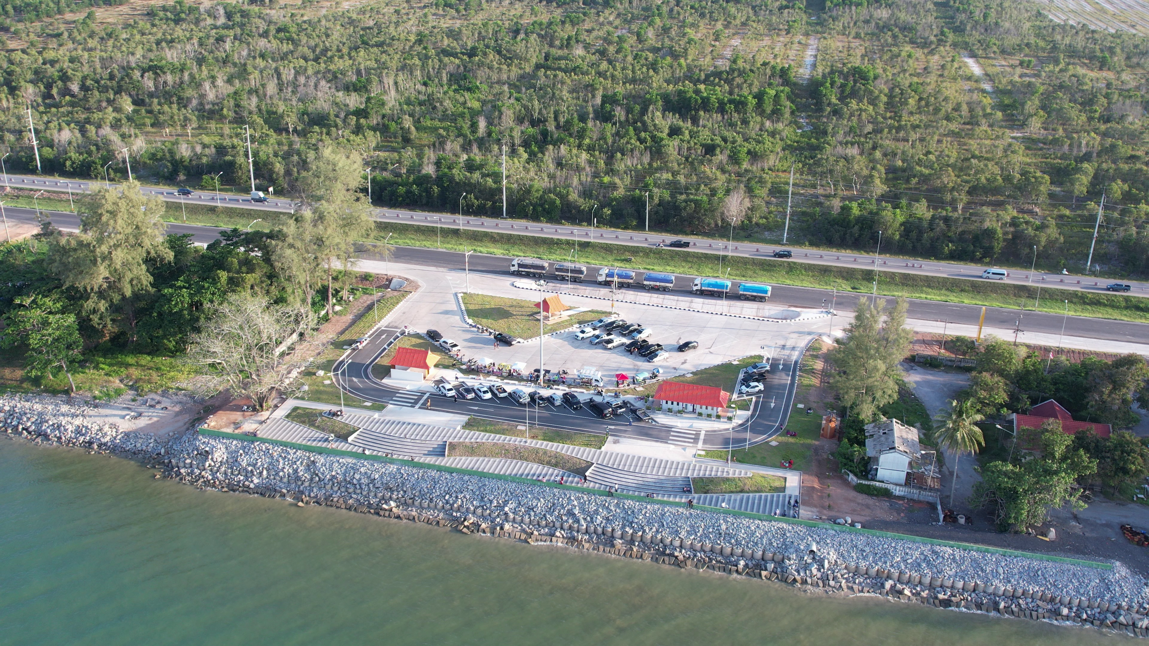 จุดพักรถแห่งใหม่นี้ถูกออกแบบมาเพื่อมอบประสบการณ์การพักผ่อนที่เหนือกว่า ด้วยทำเลที่ตั้งสุดพิเศษ ริม “ทะเลสาบสงขลา” ที่มอบทัศนียภาพอันตระการตาและบรรยากาศอันร่มรื่นแตกต่างจากจุดพักรถทั่วไปอย่างสิ้นเชิง! ทันทีที่คุณขับรถเข้ามา คุณจะสัมผัสได้ถึงความกว้างขวาง โล่งโปร่ง และความร่มรื่นจากแนวต้นไม้ที่โอบล้อม พร้อมวิวผืนน้ำทะเลสาบกว้างใหญ่สุดสายตา ถือเป็นจุดแวะพัก "วิวหลักล้าน" อีกทั้งการออกแบบก่อสร้างบันไดริมทะเลที่สามารถป้องกันการกัดเซาะชายฝั่งทะเลแล้ว ยังเป็นที่นั่งพักผ่อนชมวิว หรือถ่ายภาพความประทับใจ โดยเฉพาะช่วงเช้าและยามเย็น บรรยากาศจะงดงามเป็นพิเศษ พร้อมกับสิ่งอำนวยความสะดวกที่ตอบโจทย์ในด้านการบริหารพื้นที่และการใช้ประโยชน์ ได้แก่