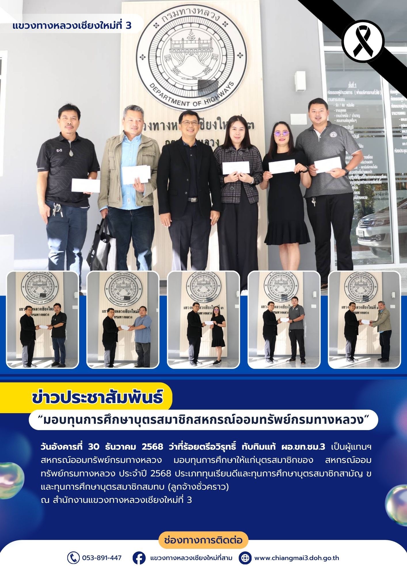 มอบทุนการศึกษาให้แก่บุตรสมาชิกของ สหกรณ์ออมทรัพย์กรมทางหลวง ประจำปี 2568