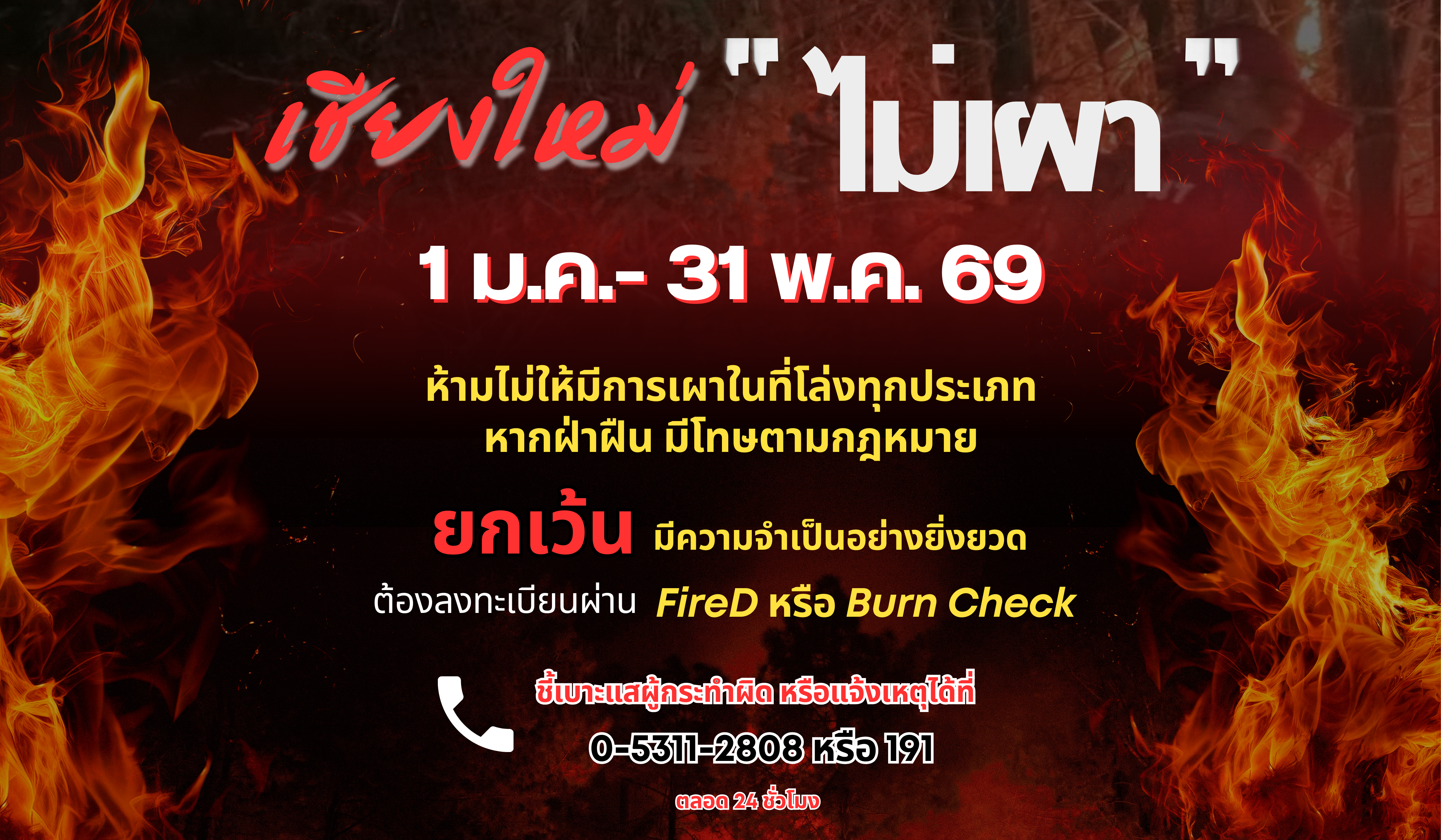 ข้อมูลข่าว : เชียงใหม่ออกประกาศ “ห้ามเผาในที่โล่งทุกชนิด” เริ่ม 1 ม.ค. – 31 พ.ค. 69