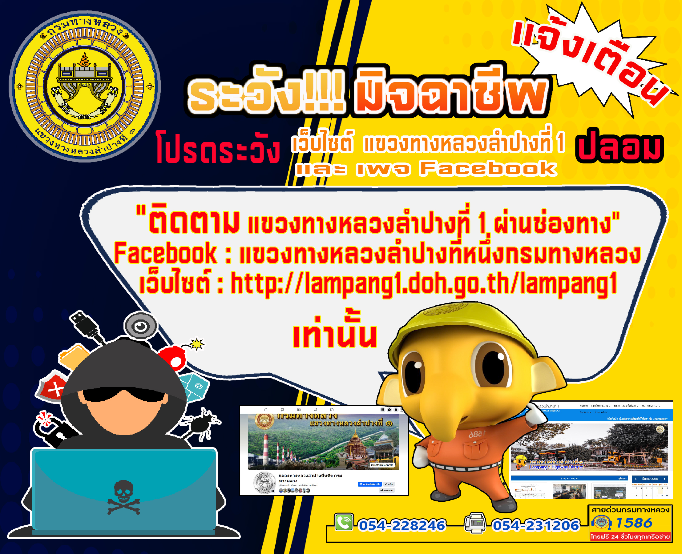 โปรระวัง!!! มิจฉาชีพ ช่องทางติดต่อแขวงทางหลวงลำปางที่ 1