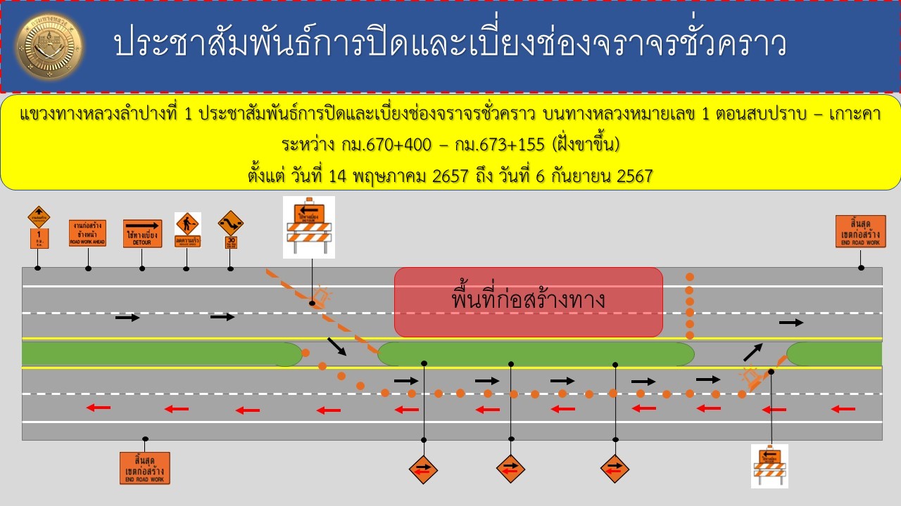 ประชาสัมพันธ์การปิดและเบี่ยงช่องจราจรชั่วคราวระหว่างการก่อสร้าง